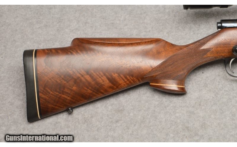 Description: This Finnish Sako Model L61R bolt action rifle in .338 Winchester Magnum is in excellent condition. The deeply blued receiver frame and barrel are excellent. The blue 24" barrel with flash hider is excellent with sharp clear rifling in its bore. The factory black curved trigger is smooth in operation with a crisp release. The figured checkered dark walnut stock is excellent with a minor scratch on the LH above the trigger. This Sako rifle is another example of Finnish quality. The Sako rifle does not come with a box or any other accessories. .338 Winchester Magnum SOLD Metal Condition: Excellent Wood Condition: Excellent - Minor Scratch at LH Above Trigger Bore Condition: Excellent Barrels: Blue 24" with Flash Hider Triggers: Factory Black Curved Grooved Stock Dimensions: LOP 13 1/2" Height 9" Length 45 3/4 Fore End: Matching Checkered Dark Walnut Butt Pad: Factory Black Checkered 3/4" Rubber Weight: 9 lbs. 5 oz. Sights: Shepherd 3 X 10 Scope Item Location: West Chester, OH |