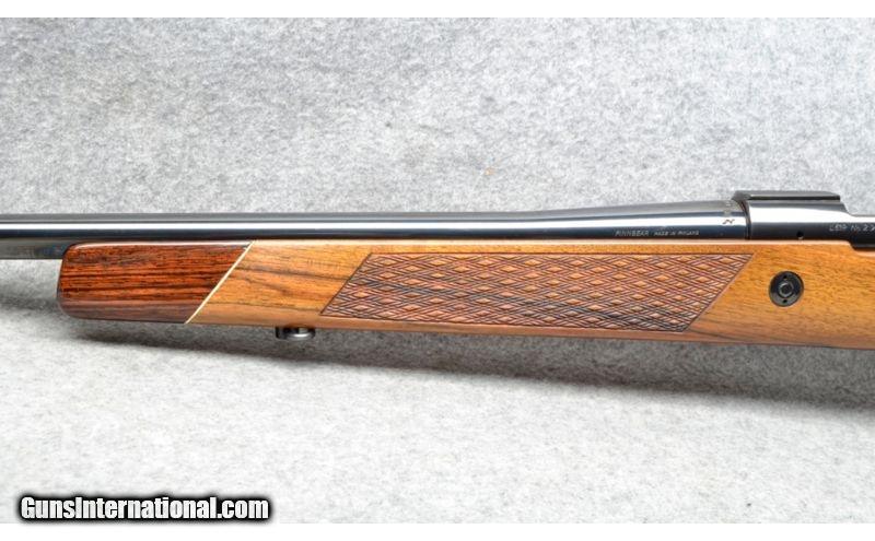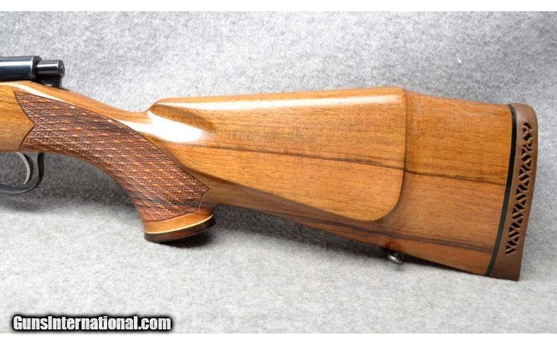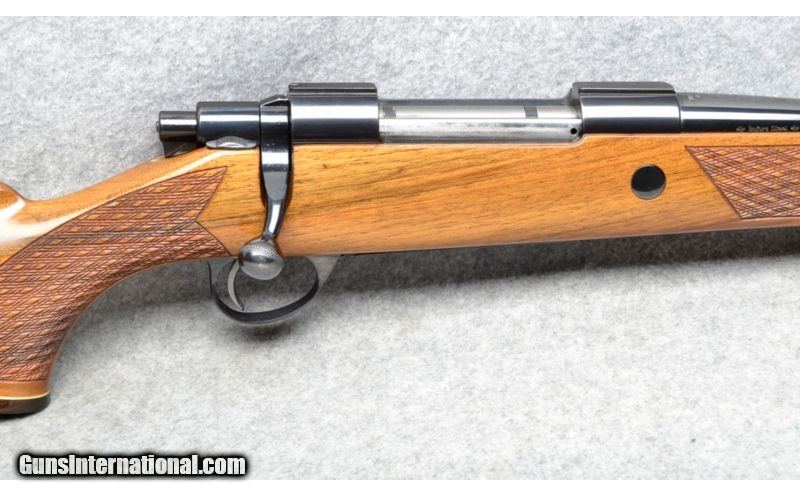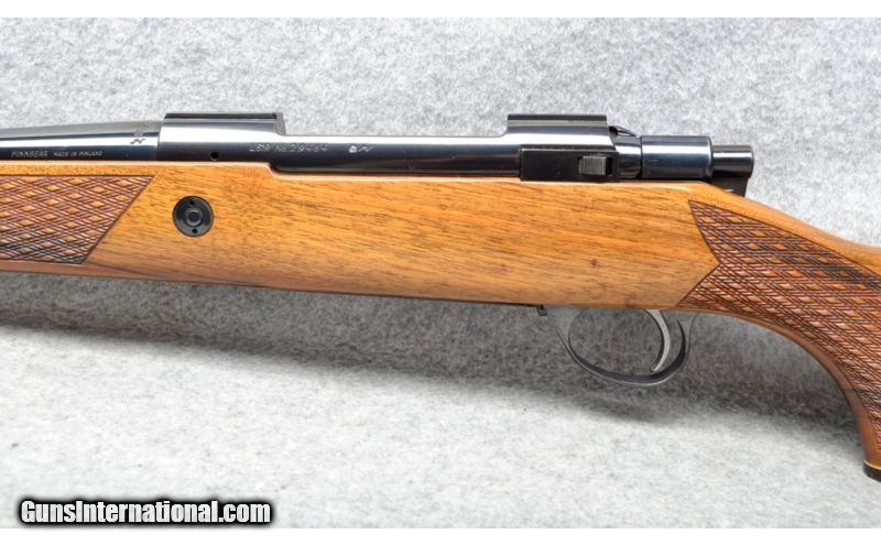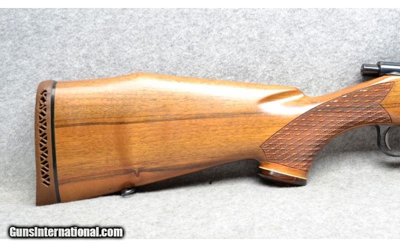 Description: Early Sako with no import markings. Skip-line checkering on stock. SOLD Caliber Info: .30-06 Metal Condition: A few minor scuffs and edge wear on muzzle. Wood Condition: Minor dents and finish blemishes on left side of stock. Bore Condition: Sharp and bright. Barrels: 24 Stock: Wood with Monte Carlo comb. Stock Dimensions: LOP = 13 3/4 Butt Pad: Soft rubber - some dry rot. Weight: 8 lb. 1 oz. Sights: None - Sako tapered dovetail on receiver. Item Location: Cheektowaga, NY |