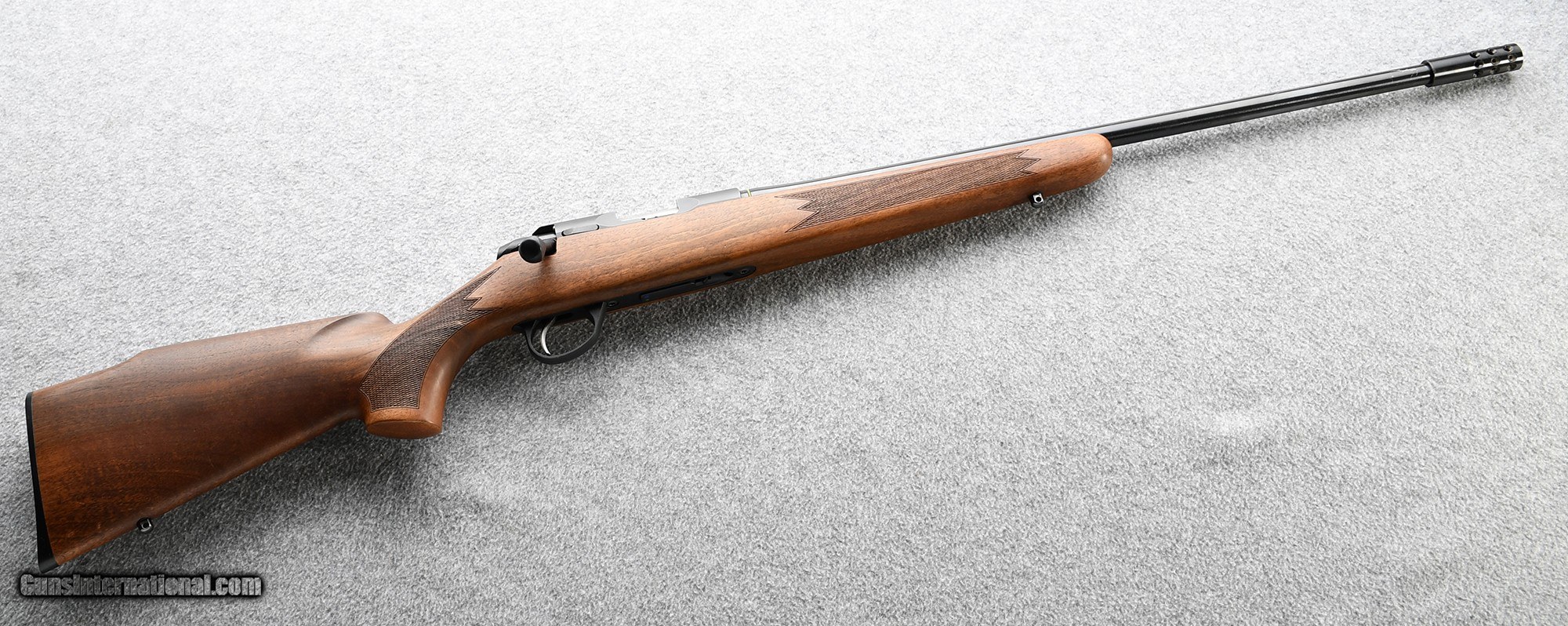 Description: Very good condition with Checkered walnut stock, integral scope mount. Threaded barrel with muzzle break. .22 Long Rifle SOLD Chambers: .22 LR in a five round detachable magazine Metal Condition: Very good Wood Condition: Very good Bore Condition: Very good Barrels: 22 Stock Dimensions: 13.75 Fore End: Checkered wood Butt Pad: Hard plastic Weight: 6lbs 4oz Sights: None Item Location: Grand Junction, CO |