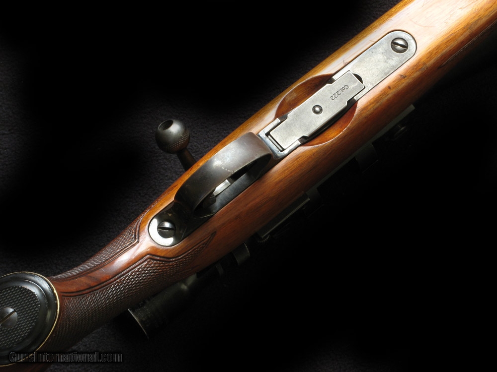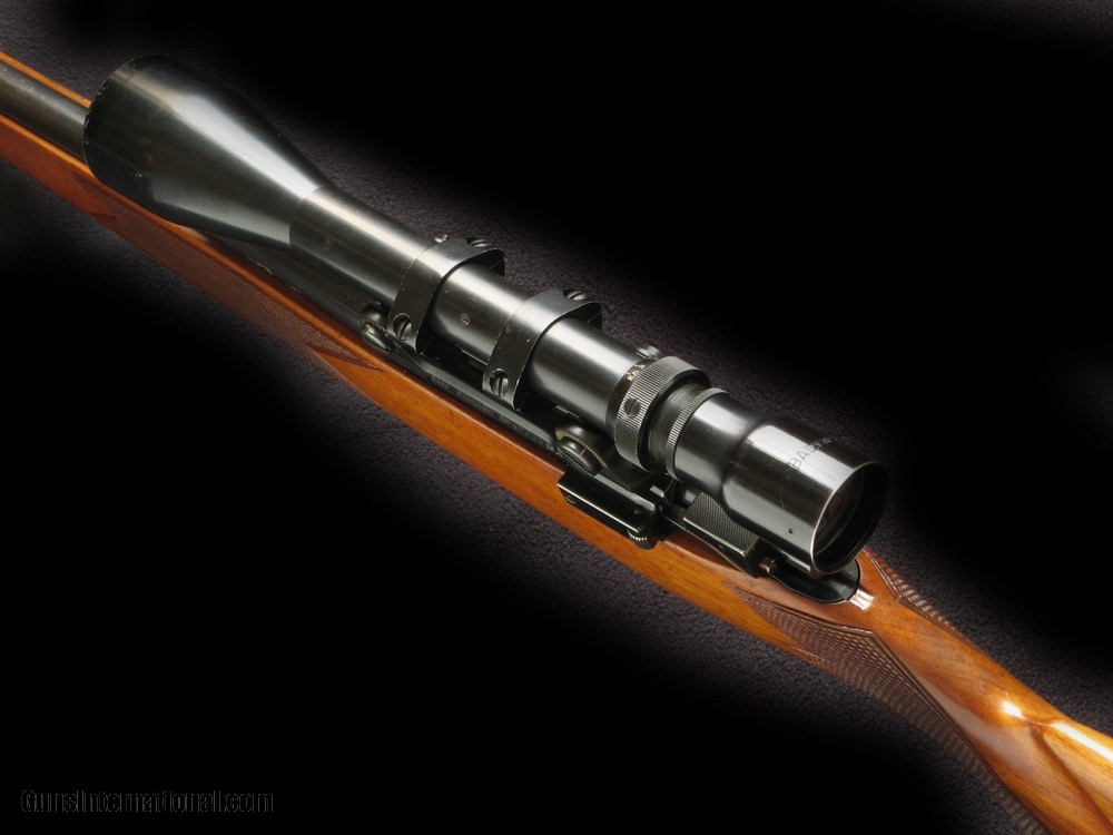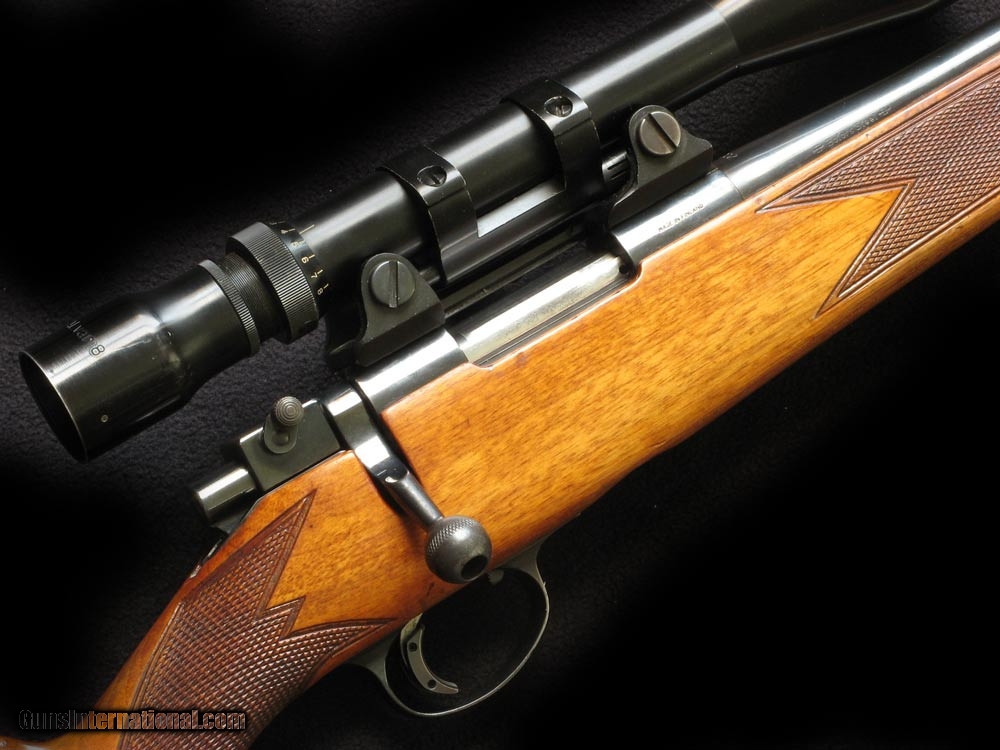 Description: Very clean and original little Sako w 24" barrel, front sight and hood intact, with a B&L Balvar 8 (2.5-8x) tapered reticle variable scope mounted in a Kuharsky mount. This mount does NOT require drilling and tapping, original Kuharsky box and instructions included. Bore, wood, metal all excellent with blueing wear confined to trigger bow and detachable mag. Some very light handling marks here and there. Trigger shoe fitted. Neat and nostalgic. SOLD |