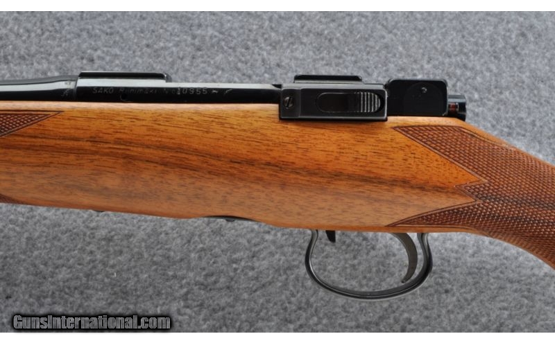 Description: SOLD Caliber Info: .222 Remington Metal Condition: Excellent, possible reblue Wood Condition: Excellent, possible refinish Bore Condition: Bright and sharp Barrels: 24 Stock: Checkered pistol grip full Mannlicher style stock with grip cap and fore end tip Stock Dimensions: 13 5/8" LOP Fore End: Checkered with barrel band and metal tip Butt Pad: Hard composite with Sako logo Weight: 6 lbs 2 oz Sights: Dovetailed blade front, No rear sight. Fitted with integral scope bases Item Location: La Vista, NE |