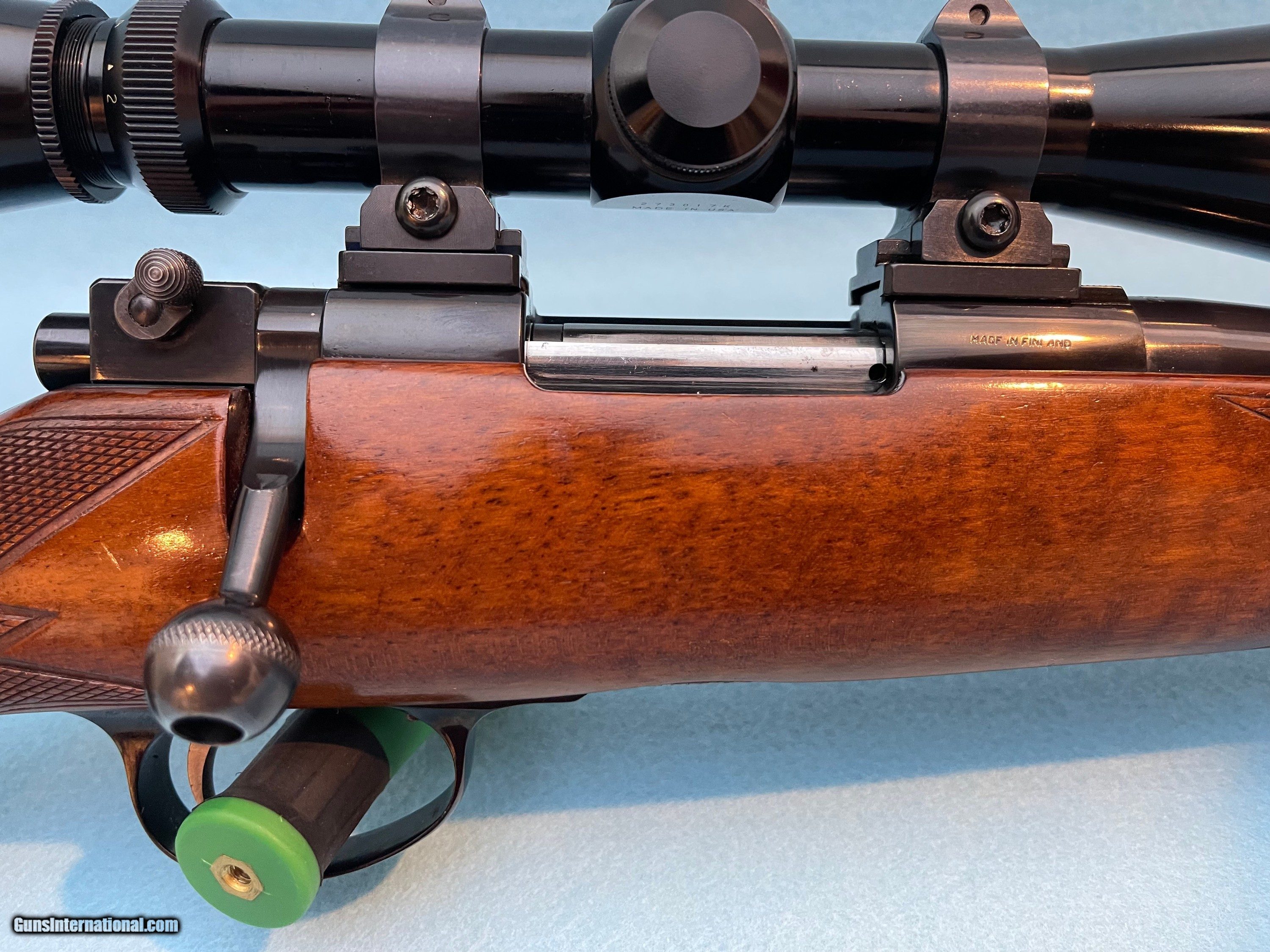 Description: SAKO Riihimaki 222 in Excellent condition. Light handling marks. This rifle rode a safe for many years before I purchased and its in great condition. SOLD Rifle Caliber: .222 Remington Manufacturer: Sako Model: Riihimaki Serial Number: 21393 Barrel Length: 24 Condition: Excellent Metal Condition: Great one mark on barrel see pic Wood Condition: very light handling marks |
