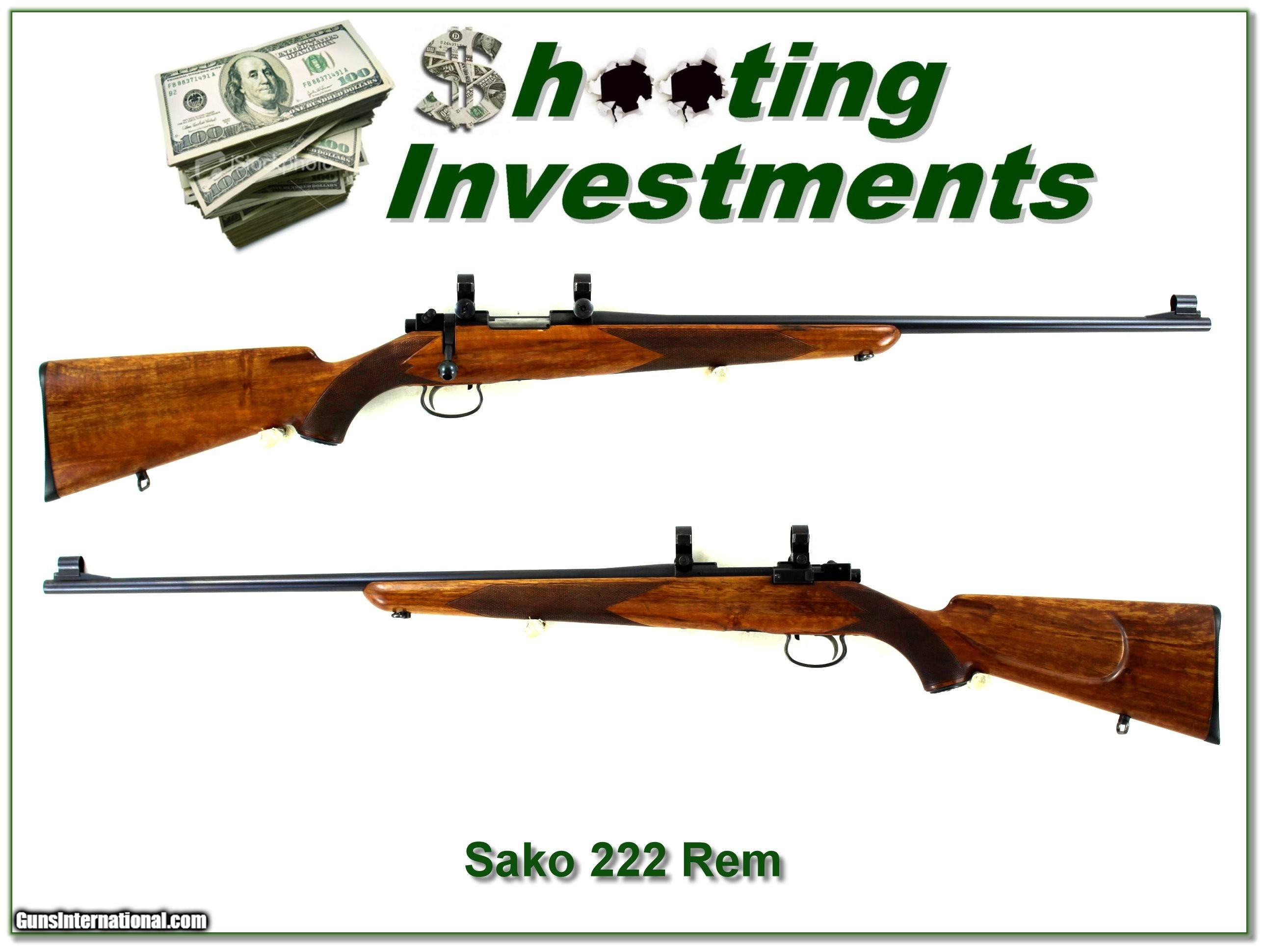 Description: This is an early Sako Riihimaki in 222 Remington. The metal is excellent and it has a 24in light contour barrel. It comes with factory rings and even has the often missing from hood. The wood is all original with much nicer grain than most with scattered minor marks. It will make a classic Sako varmint gun! It is a real Shooting Investment! Shipping and insurance is $49. Please email me with any questions or larger pictures. (Consign your quality firearms with Shooting Investments for only 12%! Let me know if you have any you would like to sell!) 24-0520 Payment: Payment is by Money Order, Cashier’s Check or Personal Check. I can now also accept Credit Cards (MasterCard, Visa, Discover & American Express) with a 3% convenience fee. Shipping: The shipping charge will be listed in each description. It is $49 for most firearms. Some heavy guns or those insured for over $2000 will be higher. Shipments to Alaska and Hawaii are higher because air shipment is required. Most firearms are shipped on Tuesday and Thursday and usually in 5 days of receipt of payment. We package all shipments carefully and insure them. Optics are shipped Priority Mail and most other non-firearm shipments are shipped First Class. Returns: Our return policy is simple. If for any reason you are not pleased with your purchase, you may return your item for a full refund of purchase price. Ammunition cannot be returned. It is important to us that you are happy. Guns cannot be fired or dissembled before returning them and they must be returned in the same condition as received. Notification of a return must occur within 3 days of receipt at your dealer. Shipping, convenience and dealer fees are not refundable and are the responsibility of the buyer. Lay-a-way: If needed, we offer a 60 day lay-a-way option on most firearms. It is 1/3 now, 1/3 in 30 days and 1/3 in 60 days. Lay-a-way firearm sales are final and cannot be returned. If a lay-a-way is not completed the first payment cannot be refunded. Consigning your firearms with Shooting Investments: We will help you get top dollar for your firearms. While most local guns shops charge 20% or more, our fee is only 12% with a minimum of $75. At your local gun shop it might take months to sell. Selling on-line provides instant access to thousands of interested buyers. You won’t find any other on-line dealer willing to sell your firearms for only 12% or listing every gun on 3 separate s. Selling through an House typically costs the seller 15% and the buyer an addition 15% (so 30%) and you have to wait several months to sell and longer to receive funds. If properly priced, we will sell your firearms within a few weeks. Send us an email or give us a call and we’ll explain how easy it is for you to get top dollar. Trading: Trading for us is really just buying your gun to re-sell. If you have a gun you want to trade, please email a picture and we will let you know what we can give for it. You will always get more if we sell it for you on consignment. SOLD |