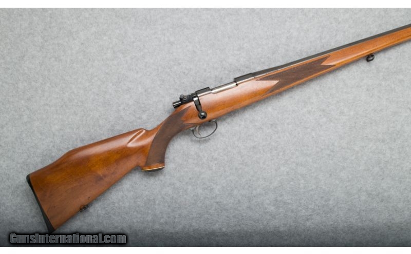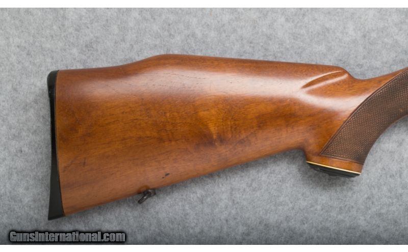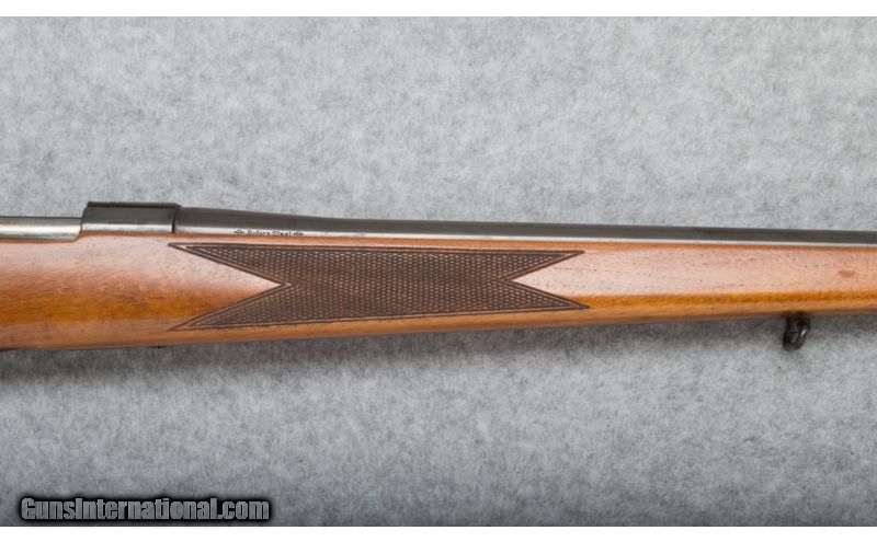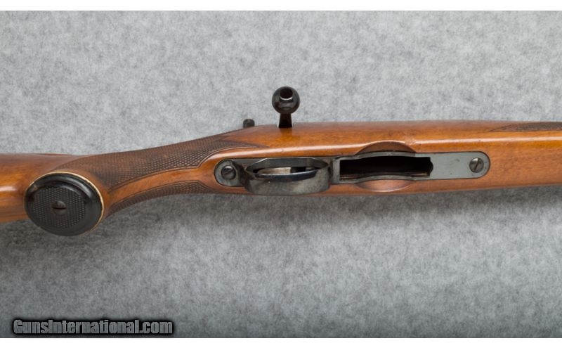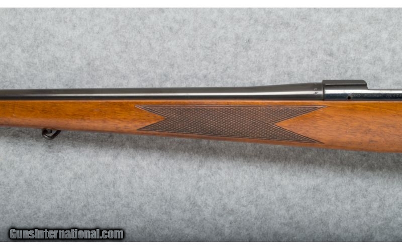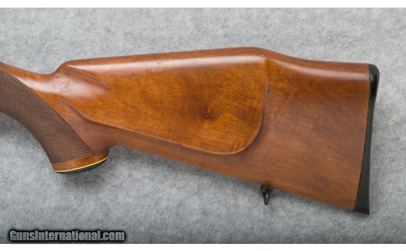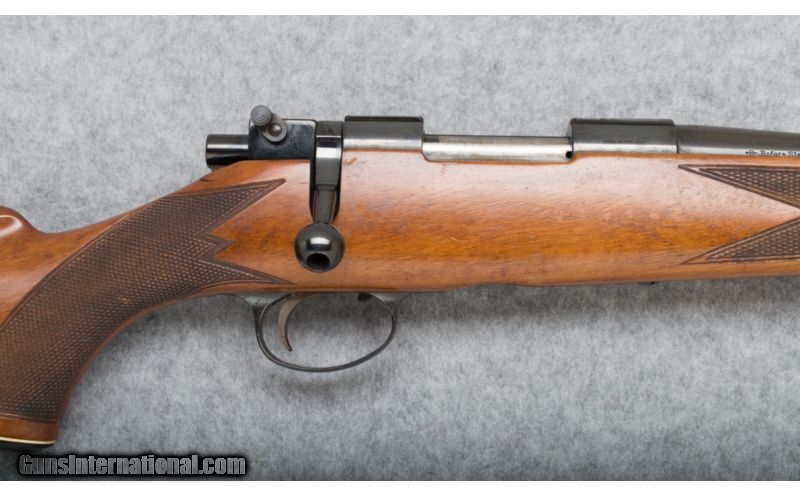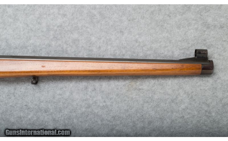 Description: This vintage Sako rifle dates from the mid 1950's. This is the L-46 action with the detachable box magazine. SOLD Manufacturer: Mid 1950's Caliber Info: .222 Rem. Metal Condition: Good; some light rust spots on triggerguard, end cap and sight hood Wood Condition: Overall pretty good; some dings and scratches in finish Bore Condition: Clean and sharp Barrels: 23 1/2 inches Triggers: Smooth; steel Stock: Full length Mannlicher style; pistol grip with cheekpiece Stock Dimensions: LOP - 13 5/8 inches Fore End: Blued metal end cap Butt Pad: Black plastic Sako butt plate Weight: 6 lbs. 4 oz. Sights: No rear; integral dovetail bases; ramp front with hood Item Location: Sun Prairie, WI |