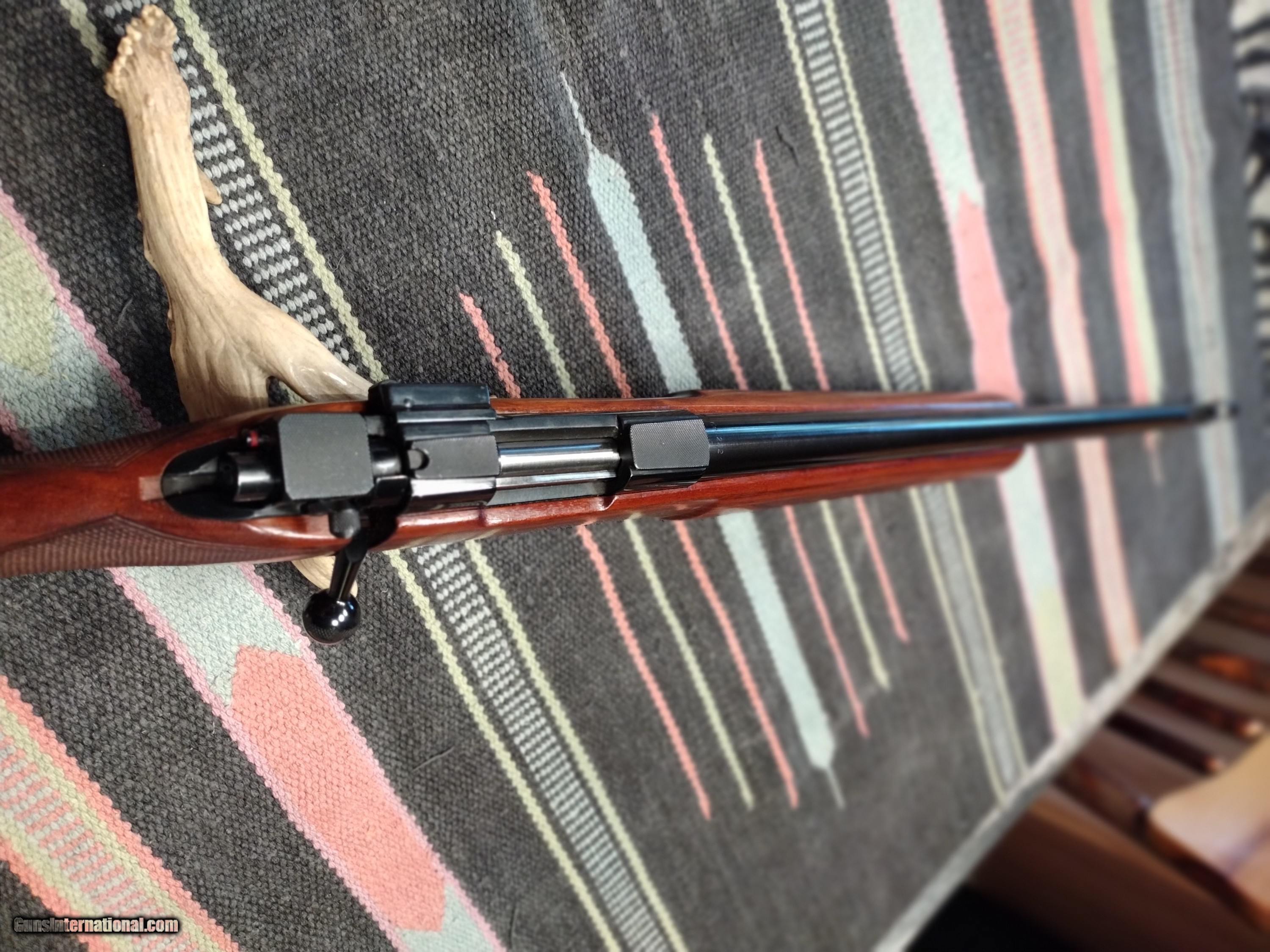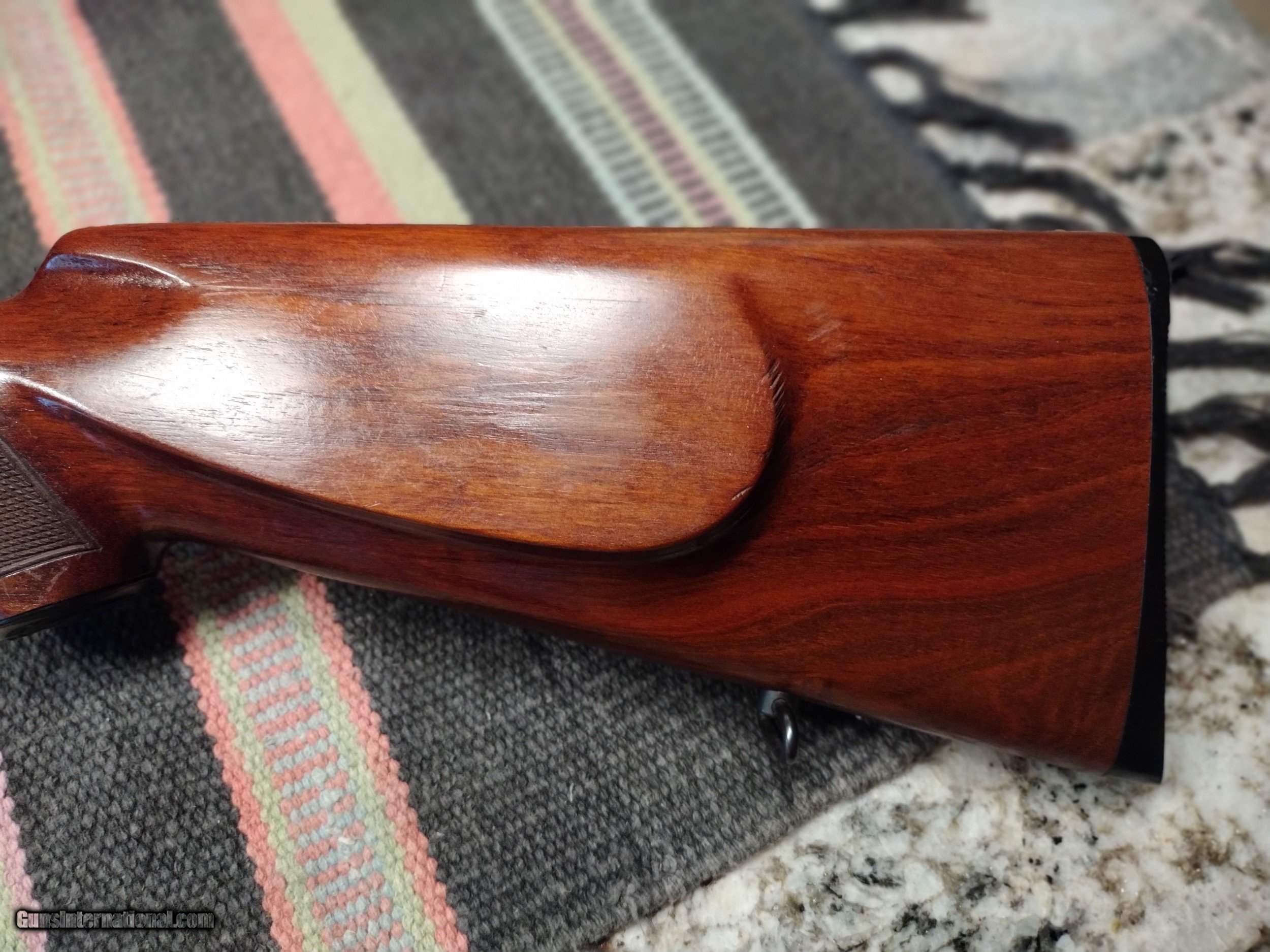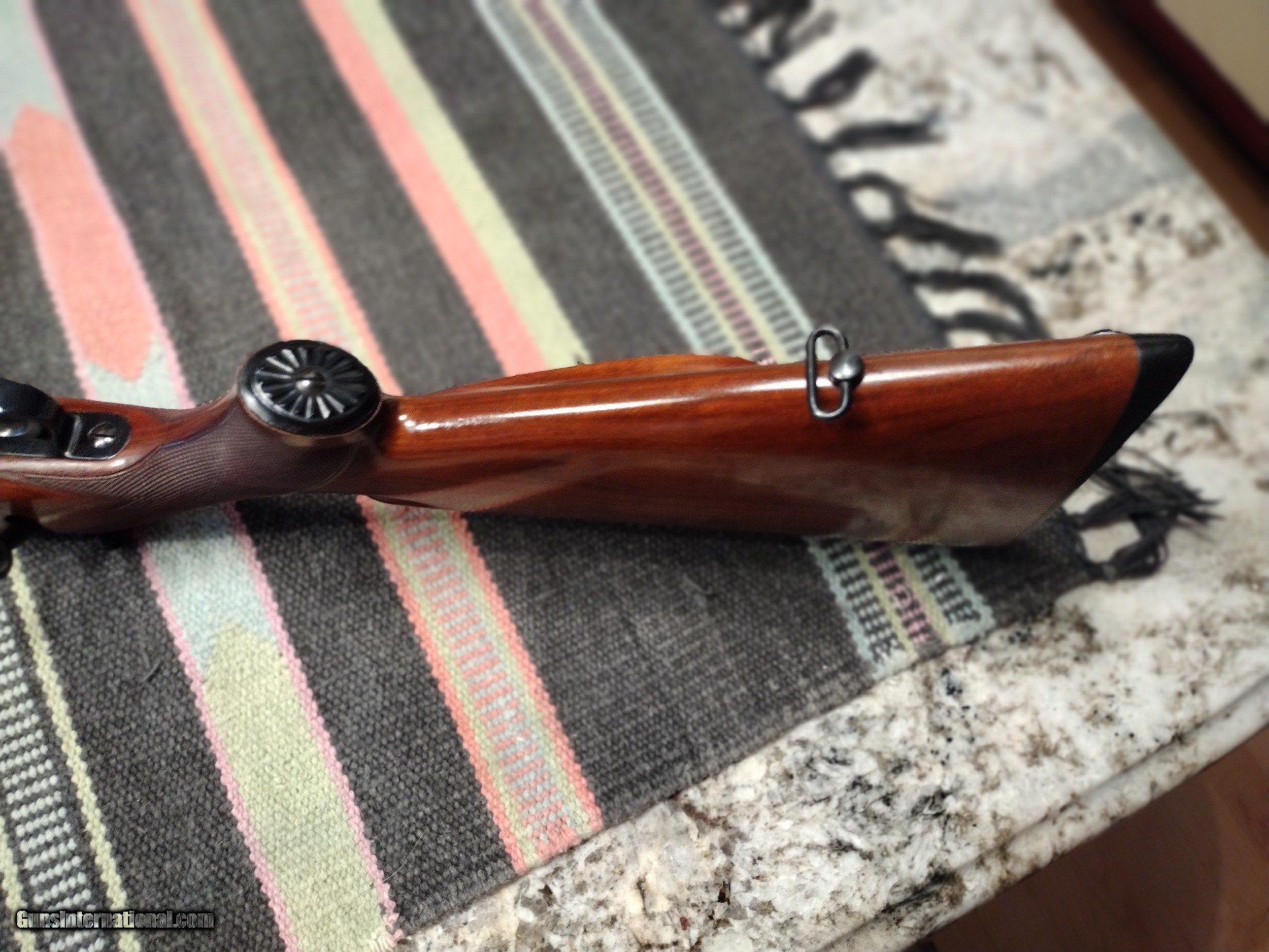 Description: Sako L46 Riihimaki Varmint in super condition in 222 rem one clip included as well as original front sight hood. I think it was built in 1956/57 . Left side of stock behind comb has some impressions. Very nice example. SOLD Curio/Relic: Yes Rifle Caliber: .222 Remington Manufacturer: Sako Model: L46 Vixen Varmint Serial Number: 38973 Barrel Length: 24 Condition: 97% Metal Condition: 99% Wood Condition: 95% Bore Condition: Excellent Action: Bolt Triggers: Factory Stock: Original Finish: Original Finish Sights: Factory Manufacture Date: 1956/57 |