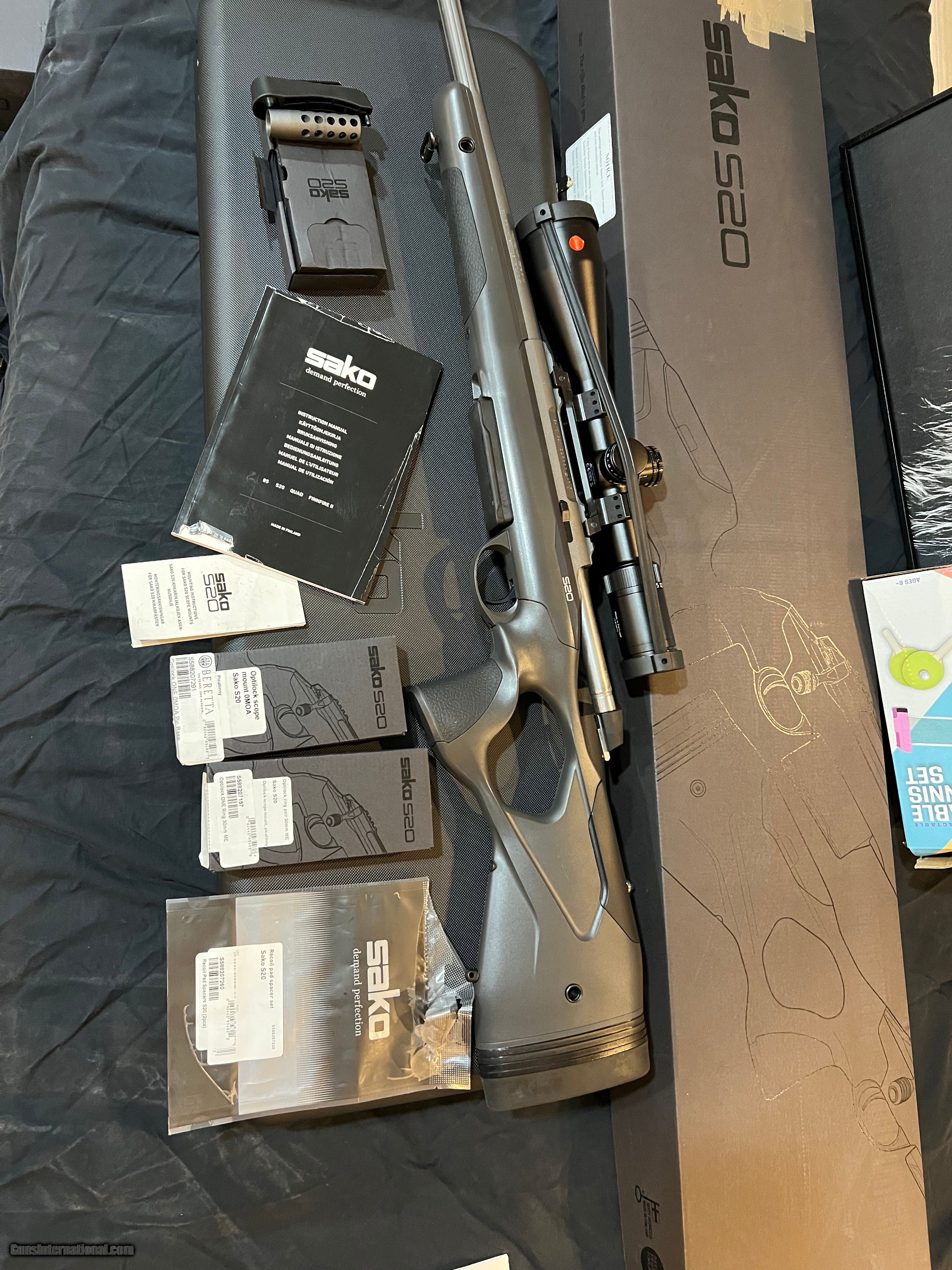 Description: SAKO S20 IS A BOLT ACTION RIFLE DESIGNED AND MANUFACTURED BY FINNISH FIREARMS COMPANY SAKO SINCE 2020 , THE RIFLE FEATURES AN ALUMINIUM CHASIS , WHICH ALLOWS FOR MODULARITY AND DIFFERENT CONFIGURATIONS , DUE TO WHICH SAKO CALLS IT HYBRID RIFLE .LEICA SCOPE IS NOT INCLUDED - NOT FOR SALE . I HAVE THAT RIFLE AT THE SHOOTING RANGE ONCE TO ADJUST SCOPE , IVE SHOT 16 ROUNDS . RIFLE IS LIKE BRAND NEW : IVE PAID FOR RIFLE $1,600.00 SMALL CASE -$275.00 RING SET $70.00 MUZZLE BREAK $68.00 RECOIL PAD SPACERS $42.00 COCKING WRENCH $29.00 TOTAL 2,191.00 MY PRICE IS $1300.00 FOR ALL SET UP (LEICA SCOPE NOT INCLUDED IN THAT PRICE , IF YOU WANT TO ADD LEICA SCOPE -$2900 ) SOLD Rifle Caliber: .300 Winchester Magnum |