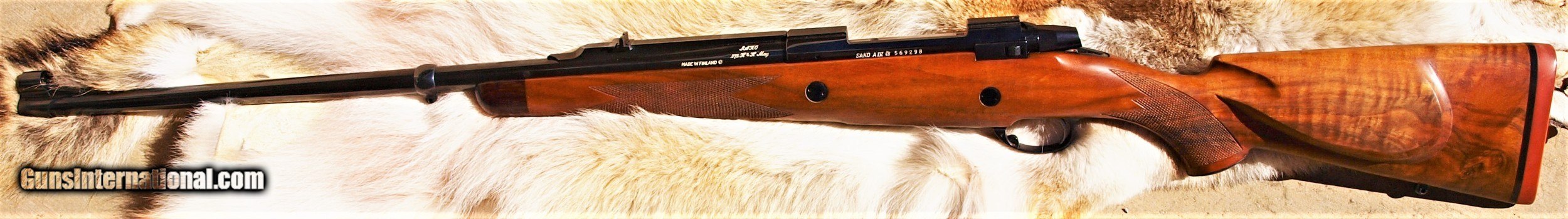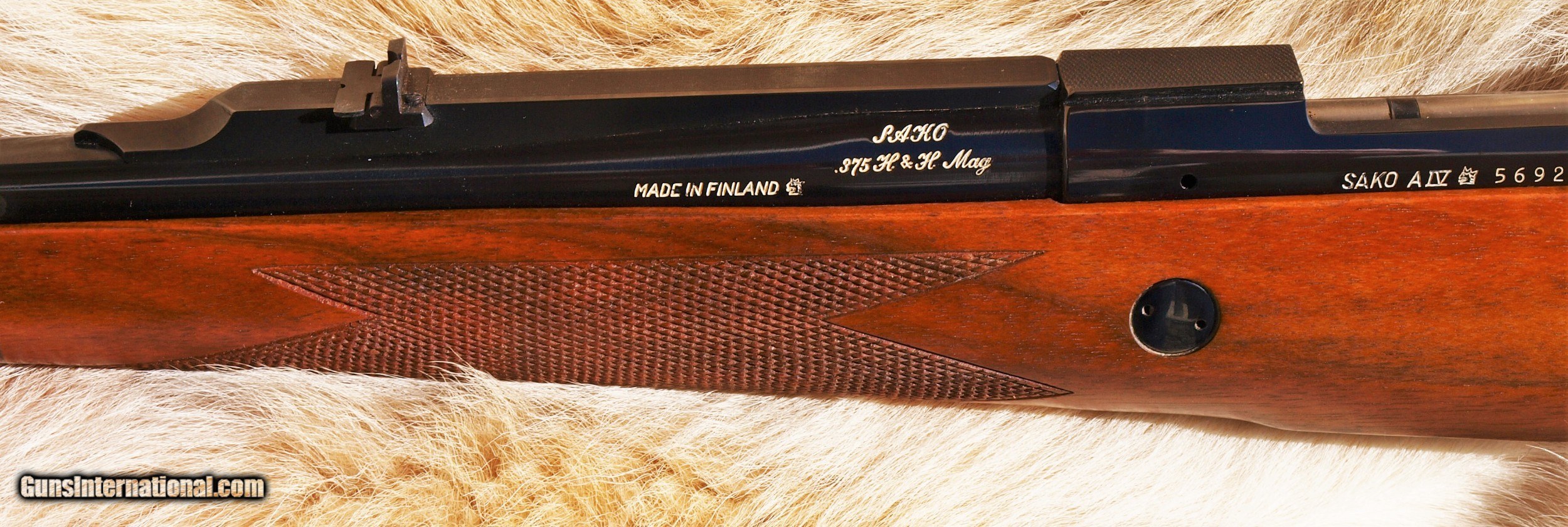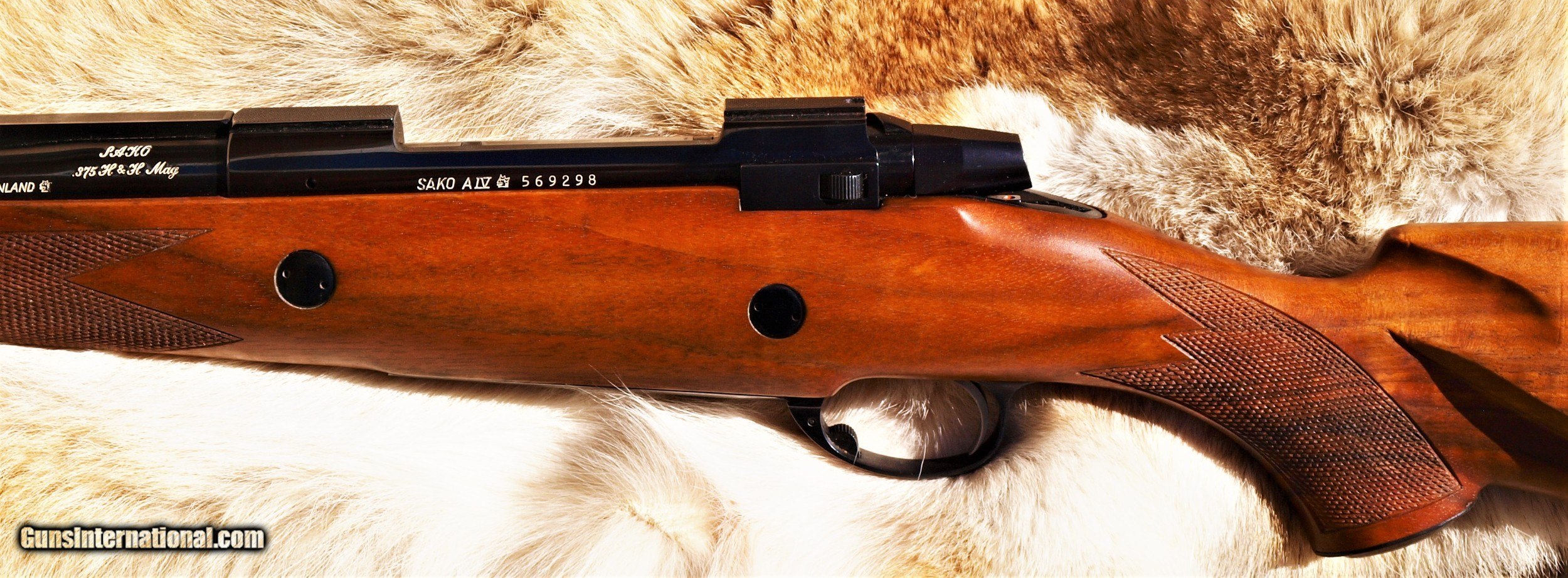 Description: Offered here for sale, SAKO AIV SAFARI GRADE Chambered in 375 H&H, Barrel length is 24.5" With a 1 - 12" Twist, Hooded front Ramp sight with barrel band, Rear sight is Express type on quarter rib. Extended belly on stock in magazine allows four back up rounds. Beautiful FRENCH WALNUT in the classic stock design with a straight comb. Ebony Forend tip and metal pistol grip ca. Fine line hand cut checkering, finished in a satin hand rubbed oil finish. Dual stock cross bolts for added strength. Length of pull 13 1/2", Overall length, 44 1/2", APPROX: WEIGHT 8 1/4 LBS. SAKO'S TOP OF THE LINE RIFLE BUILT, FOR THE Professional. Ships only to a valid FFL in the U.S. Shipping to Hi or AK will be actual cost to buyer. Make sure your FFL will accept this from a private party otherwise an additional $20.00 fee will be incurred by buyer having to use an FFL to ship. Shipping $50.00 in the continental U.S. Payment expected within 7 business days or item will be re-listed. NO PAYPAL. It is not up to me to acquire your dealers FFL so please do not ask me to contact your dealer after the it is your responsibility to have them contact me or obtain their FFL. I will NOT chase an FFL for you. Offers entertained. BUY WITH CONFIDENCE, ALMOST 800 POSITIVE FEEDBACKS SELLING on G.B., under Seller name pair a 44s. SOLD Rifle Caliber: .375 H&H Magnum Manufacturer: SAKO Model: SAFARI AIV Barrel Length: 24.5 Condition: Excellent Wood Condition: Excellent Bore Condition: Excellent Rib: QUARTER |