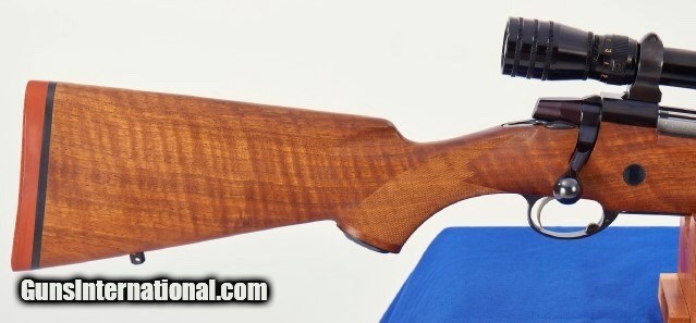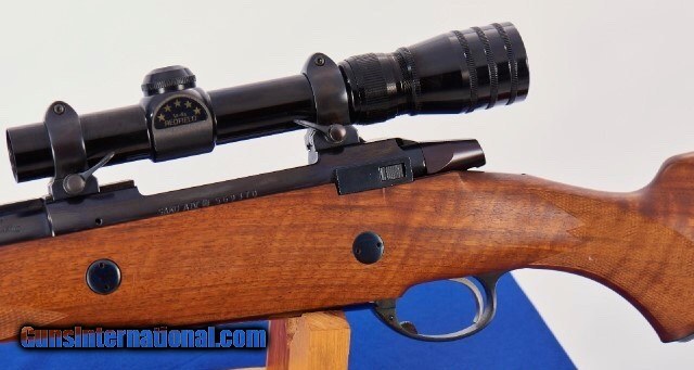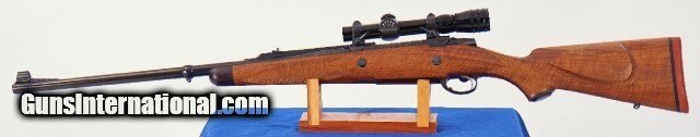 Description: One of the finest commercial made big game rifles ever produced. This near mint Sako Safari has it all. Superb quality equals many custom rifles at a fraction of the price. Chambered in the great 375 H&H and weighing in at nine pounds scoped with an excellent 1-4X Newer Redfield scope in quick detachable rings. 23 inch ported barrel, 13 5/8 pull over factory red pad. No flaws on this beauty. $2098 plus $55 insured shipping in hard case. Lengthy Layaway available. No credit cards and no trades. SOLD |