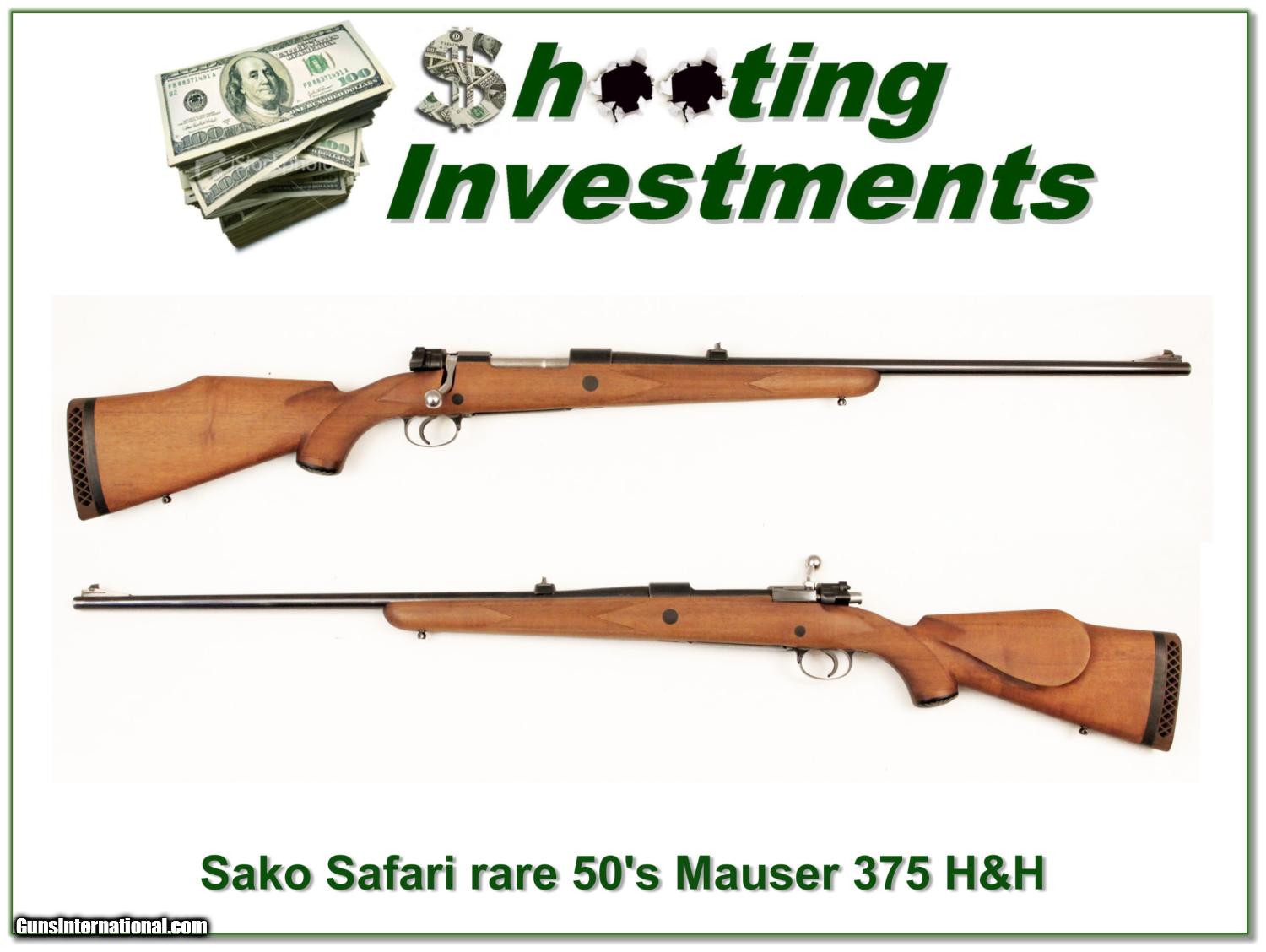 Description: Collectors, this is early Sako Safari in the very hard to find 375 H&H. These pre-Sako action guns were built on Mauser actions and barrels by Sako in Finland. This one is in excellent condition. It has a Bofers Steel barrel and 2 leaf rear sight. It has an extended recoil pad with 14in LOP. You can reduce that if needed. This one will make an impressive classic big game gun. Shipping and insurance is $30 or $18 more if you want it shipped in a new Plano hard case. Please email me with any questions or larger pictures. (I now consign quality firearms only 10%! Let me know if you have any you would like to sell!) [15-1132] Payment: Payment is by Money Order, Cashiers Check or Personal Check. I can now also accept MasterCard and Visa with a 3% convenience fee. PayPal can be used for some items but never firearms. Please let us know if you would like to pay via PayPal. Shipping: The shipping charge will be listed in each description. It is $30 for most guns. Some heavy guns or those insured for over $2000 may be higher. Shipments to Alaska and Hawaii are higher because air shipment is required. Most firearms are shipped within 5 days of receipt of payment. We prefer shipping at the beginning of the week to avoid firearms in transit over weekends. We package all shipments carefully and insure them for the full purchase price, rounded up to the next $100. In the unlikely event that damage occurs, it is important that you save all packaging material for the claims process. Optics are shipped Priority Mail and most other non-firearm shipments are shipped First Class. Returns: Our return policy is simple. If for any reason you are not pleased with your purchase, you may return your item for a refund. The only exception is ammunition, it cannot be returned. It is important to us that you are happy. Guns cannot be fired or dissembled before returning them and must be returned in the same condition as received. Notification of a return must occur with-in 3 days of receipt at your dealer. Shipping, convenience and dealer fees are not refundable and are the responsibility of the buyer. Lay-a-way: If needed, we offer a 60 day lay-a-way option on most firearms. It is 1/3 now, 1/3 in 30 days and 1/3 in 60 days. Lay-a-way firearm sales are final. Consigning your firearms with Shooting Investments: We will help you get top dollar for your firearms. While most local guns shops charge 20% or more, our fee is only 10% with a minimum of $50. At your local gun shop it might take months to sell. Selling on-line provides instant access to thousands of interested buyers. You won’t find any other on-line dealer willing to sell your firearms for only 10% or listing every gun on 4 separate s. Selling through an House typically costs the seller 15% and the buyer an addition 15% (so 30%) and you have to wait several months to sell and longer to receive funds. If properly priced, we will sell your firearms in a week or two. Send us an email or give us a call and we’ll explain how easy it is for you to get top dollar. Trading: We collect guns and usually just trade for guns we want to add to our collections. We often sell guns for others wanting to purchase one of ours. We find this the most fair to both of us. Our Commission is only 10% and we hold the gun you want until yours sells. Please contact us if you want to sell one of yours to buy one of ours. Help for California Buyers: We are happy to ship to California. It is the buyer’s responsibility to make sure any item you buy is legal in your state. We are also happy to help with your purchase of a firearm from someone other than us. If you see a gun you would like to buy but the seller can’t or won’t ship to California we can help. You buy the gun and have it shipped to us. We’ll then ship it to your California dealer. The cost for this service is only $30 + shipping. Let me know if we can help! SOLD |