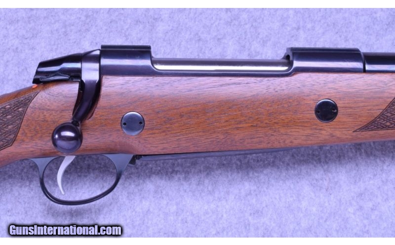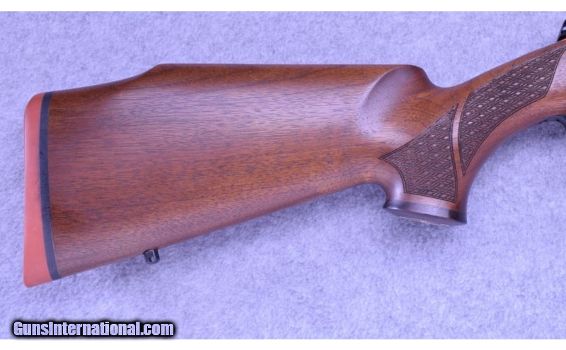 Description: Excellent throughout showing little to no use. Complete with owners manual. No box. SOLD Manufacturer: S/N 761XXX Caliber Info: .338 Win. Mag. Metal Condition: Excellent Wood Condition: Excellent Bore Condition: Excellent Barrels: 24 1/2 Triggers: Factory Stock: Checkered Walnut Pistol Grip with Contrasting Cap & Right Hand Palm Swell Stock Dimensions: 14 1/4" LOP Fore End: Checkered Walnut with Contrasting Cap Butt Pad: Red Rubber Weight: 8 1/2 LB Sights: None Item Location: Wheeling, WV |