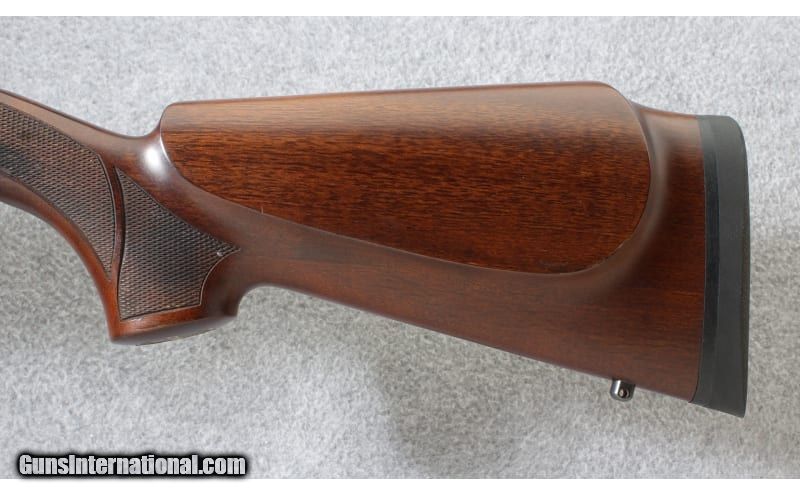 Description: This Sako V 75 Hunter .338 Winchester Magnum features a checkered walnut stock with Monte Carlo comb and cheek piece; nice blued finished steel, three locking lugs, 70 degree bolt throw, detachable magazine and free floated barrel. It is a good hunting rifle chambered in a caliber capable of taking any North American big game. It would be a good addition to any collection. .338 Winchester Magnum SOLD Metal Condition: Excellent Wood Condition: Excellent with some handling marks Bore Condition: Excellent Stock Dimensions: 13 inch LOP Butt Pad: Decelerator pad Weight: 7 Lbs. 12 Oz. Sights: Dovetailed receiver for scope mounting Item Location: Lehi, UT |