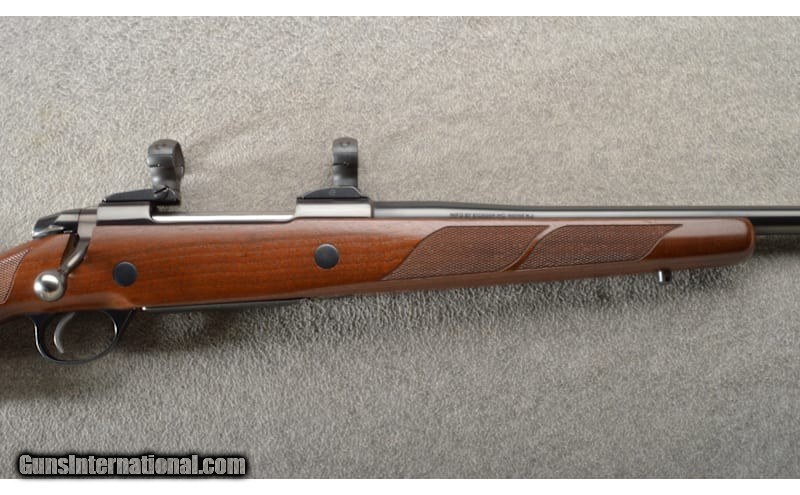 Description: Stoeger Import marked Sako V 75 Bolt Action Rifle in .338 Winchester Magnum with 24.5" tapered barrel. The left side of the barrel is marked "CAL .338 WIN MAG MADE IN FINLAND." The left side of the receiver is marked "SAKO V" and the serial "981354". The stocked is a checkered walnut Monte Carlo-style stock with a raised cheekpiece and a right-handed pistol grip. There is a Sako medallion fitted in the bottom of the pistol grip. The checkering has decorative boarder design. Overall this rifle remains in excellent condition with minimal marks. Comes with one removable magazine and factory box with owners manual. .338 Winchester Magnum Chambers: Bolt action. Metal Condition: A couple scratch marks on the right side of the barrel "see pictures". The bolt handle shows light finish loss and the high edges of the safety switch. A few light scuffs on the bottom of the removable magazine. Overall the metal finish rates ab Wood Condition: 99% remaining with no cracks or chips. Bore Condition: Bright bore with very strong rifling. Barrels: 24.5" barrel. Triggers: Single trigger. Stock Dimensions: LOP 14.5". Fore End: Checkered. Butt Pad: Rubber. Sights: Sako rings. Item Location: Owatonna, MN Price: $1,799.99 Contact Seller |