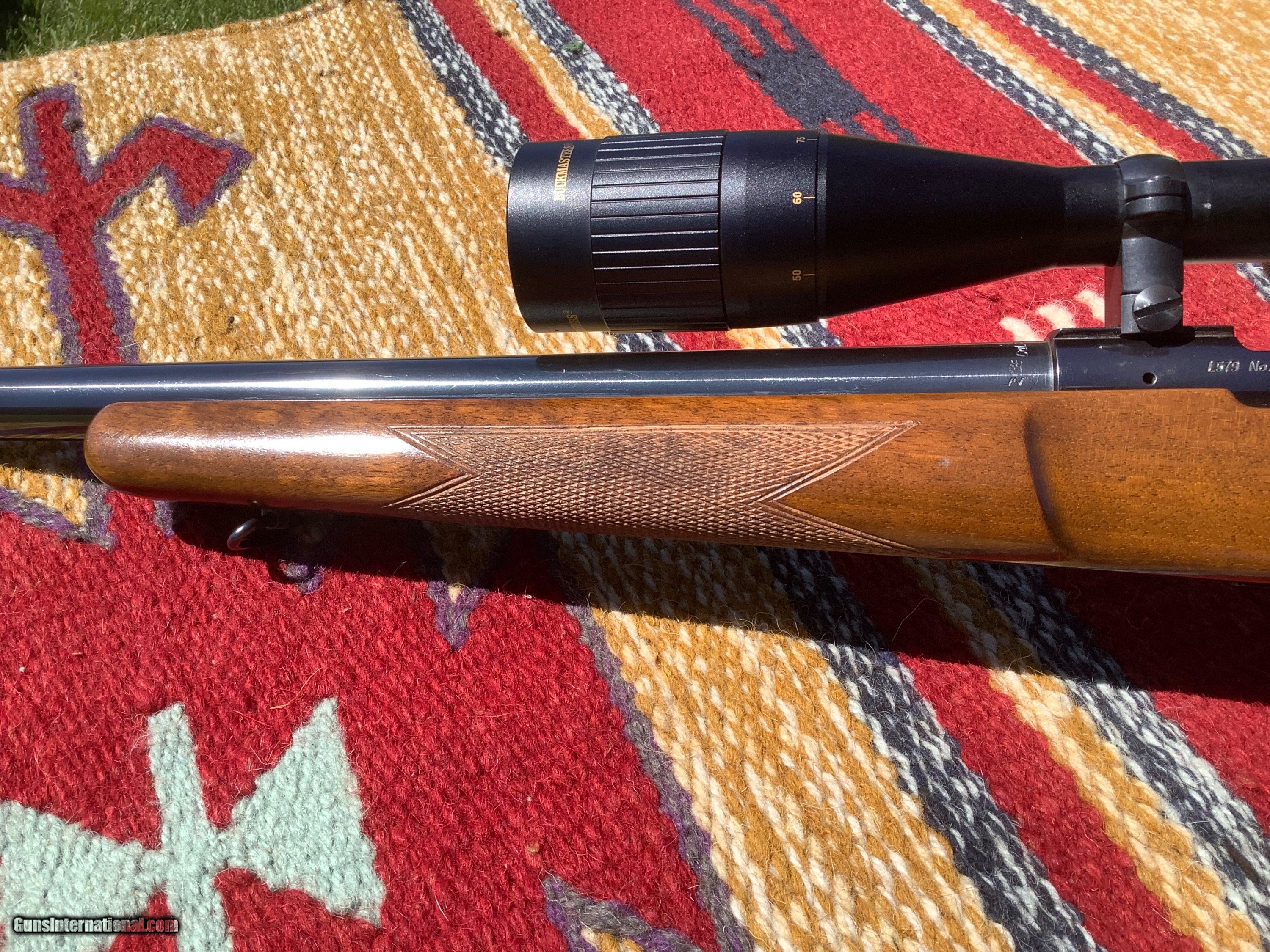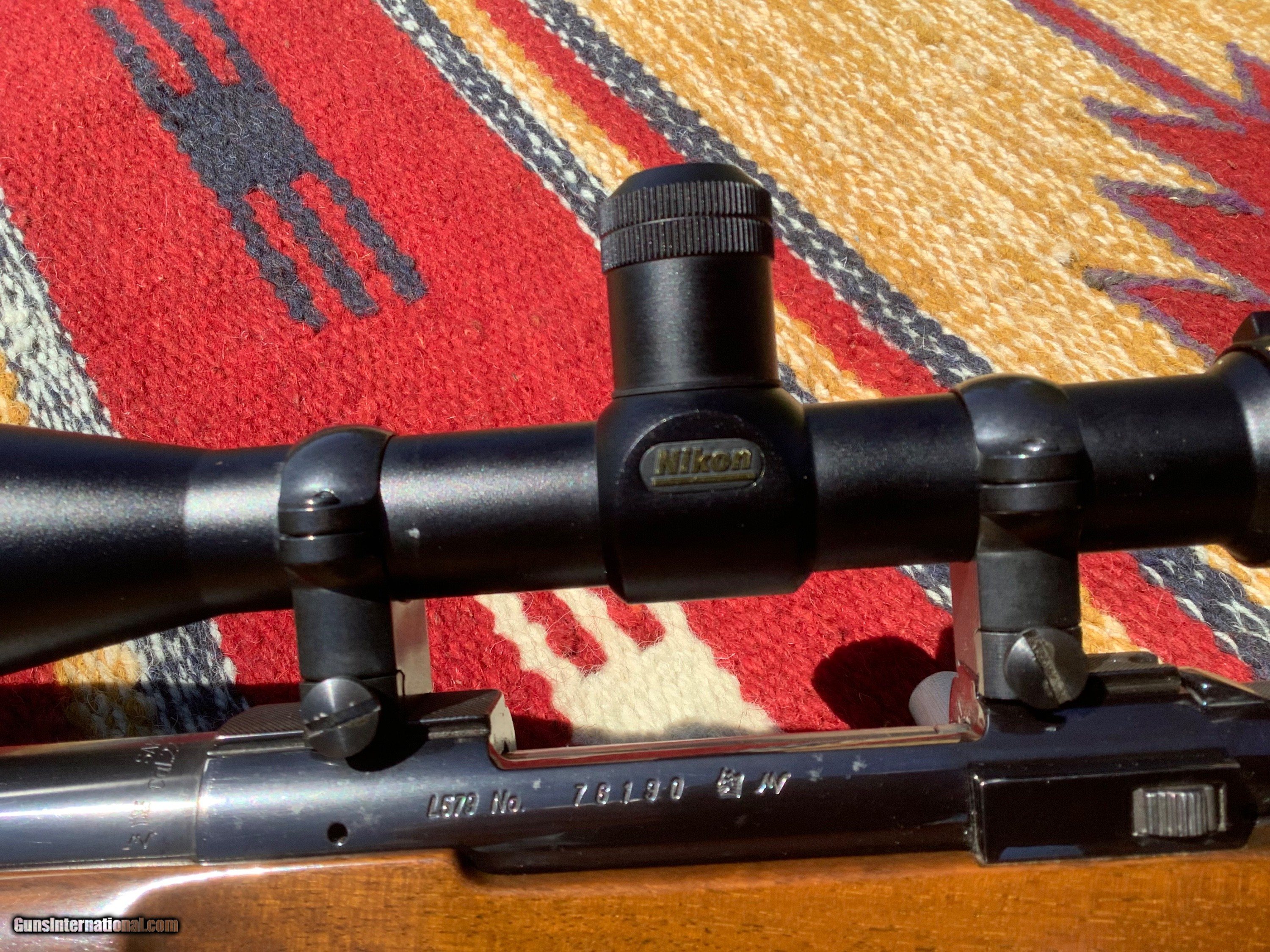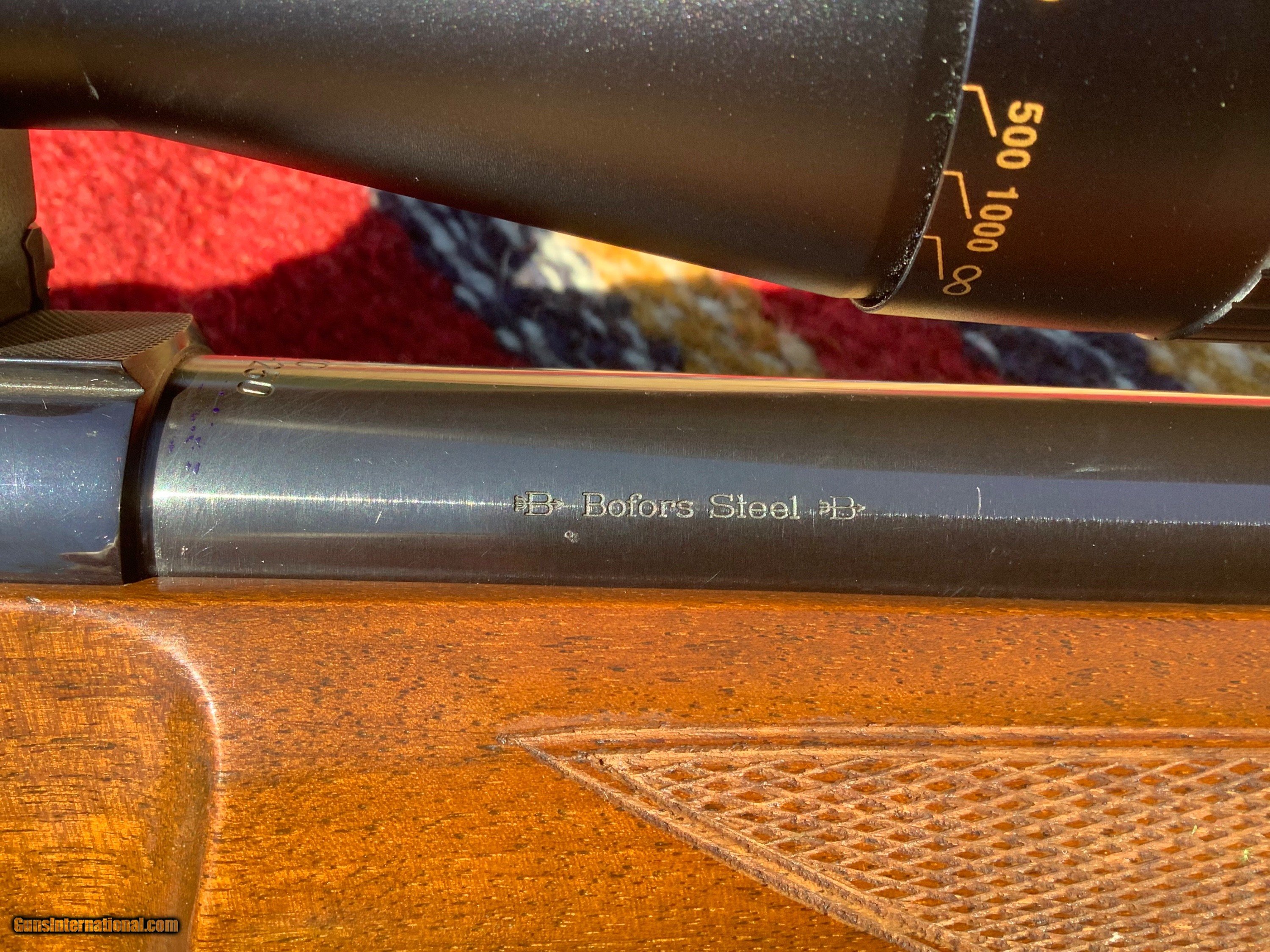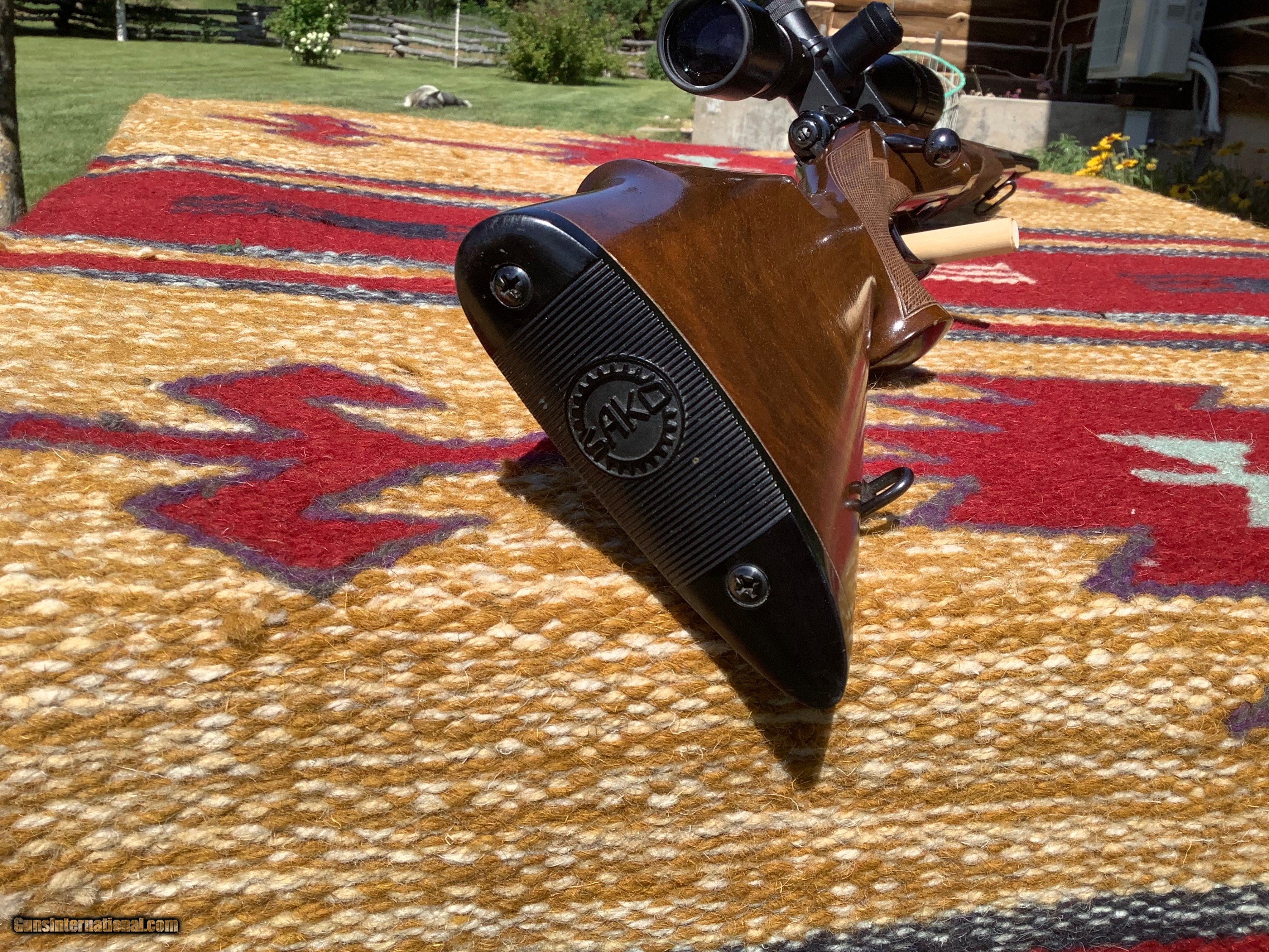 Description: Sako 22-250 bofors varmint weight weight, excellent condition. Nikon Buckmasters target scope with target knobs, fine duplex crosshair. The rifle does not appear to have been shot very much, great bore, wood is very nice with a few impressions, worst of it is on bottom of forend. Sako buttplate, scope is 6-18 power. 1675.00, 75.00 shipping, Money order, check, or certified check. SOLD |