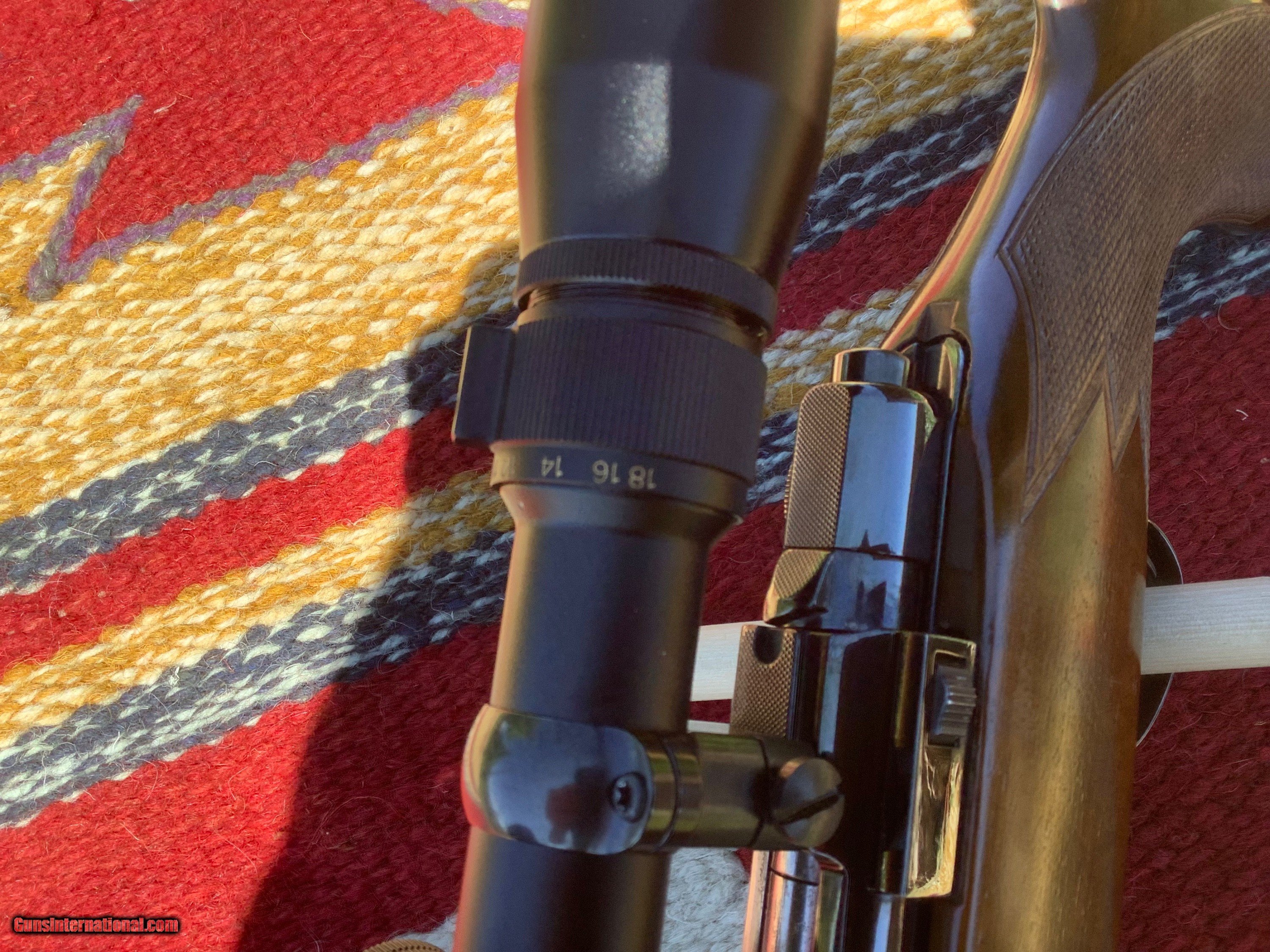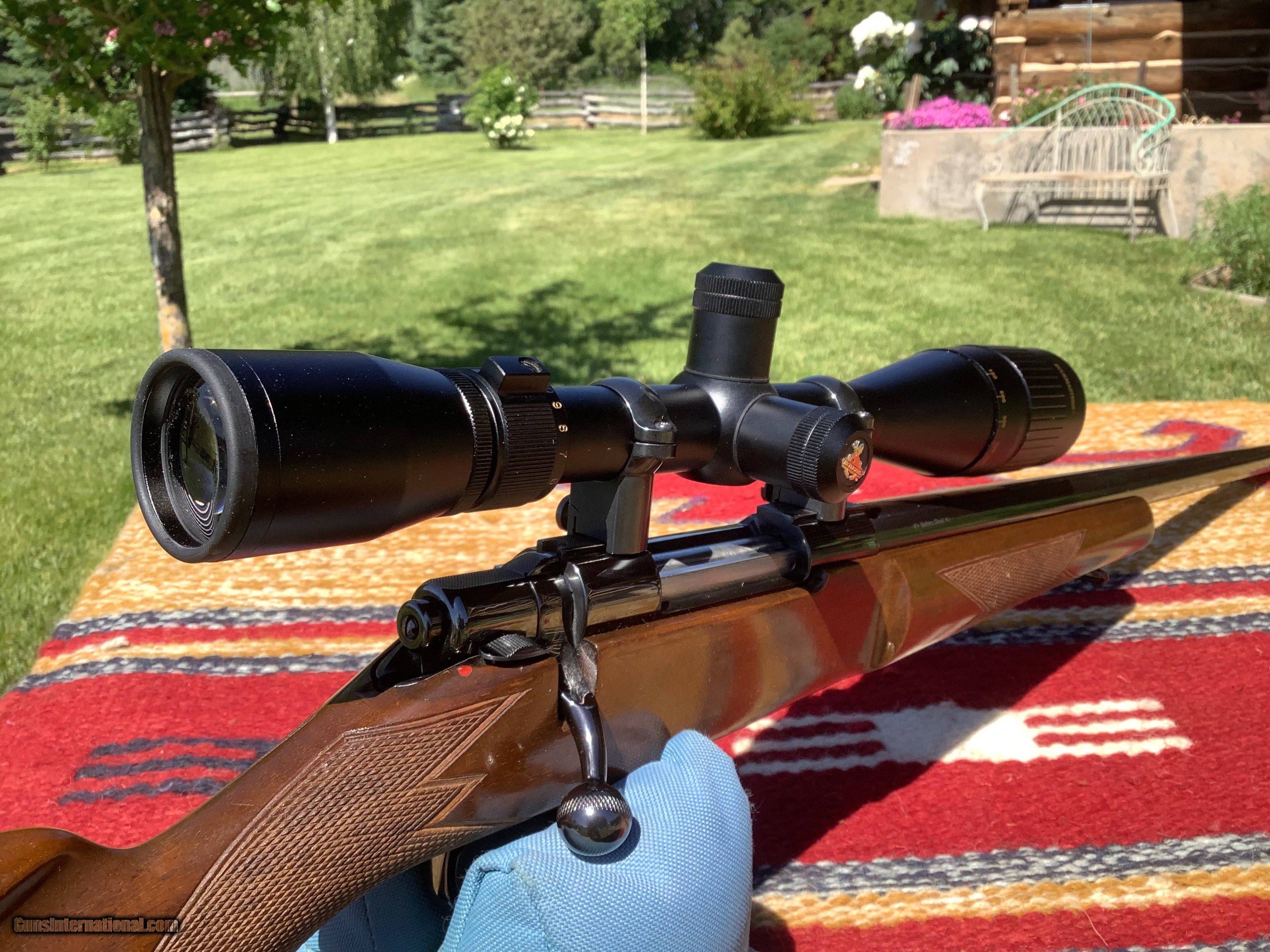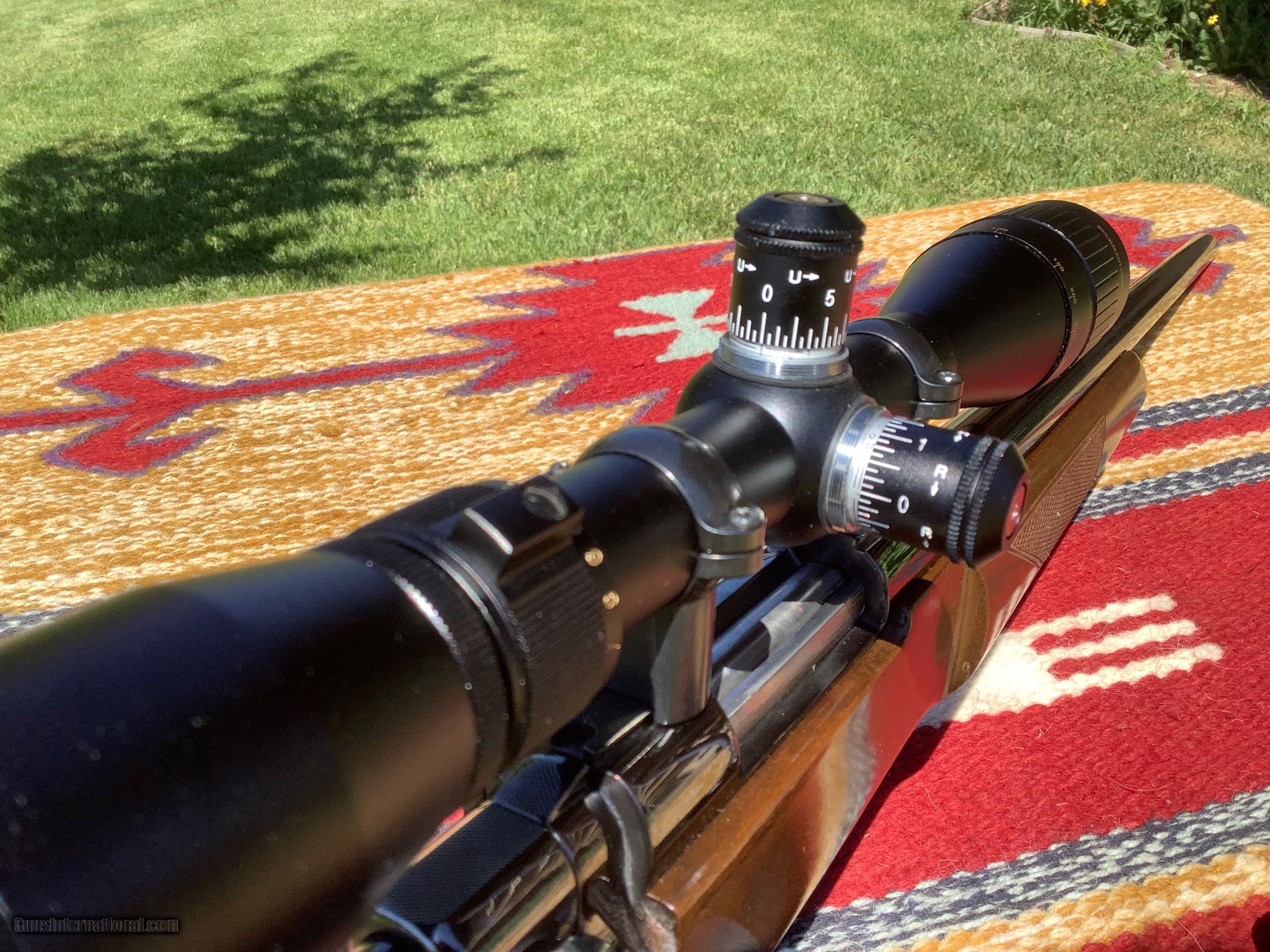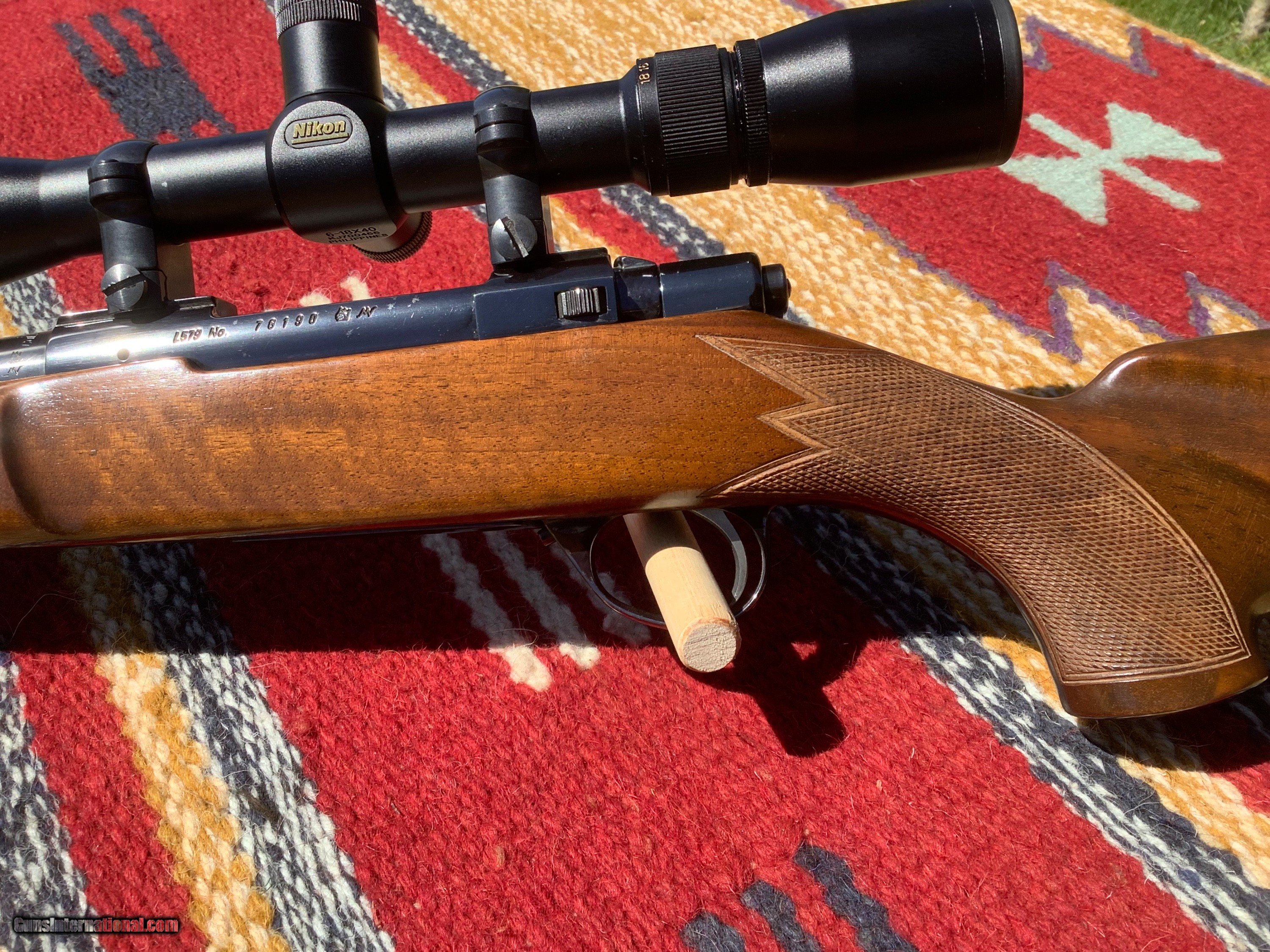 Description: Sako 22-250 bofors varmint weight weight, excellent condition. Nikon Buckmasters target scope with target knobs, fine duplex crosshair. The rifle does not appear to have been shot very much, great bore, wood is very nice with a few impressions, worst of it is on bottom of forend. Sako buttplate, scope is 6-18 power. 1675.00, 75.00 shipping, Money order, check, or certified check. SOLD |