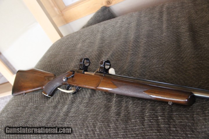 Description: Sako Vixen short action 222 Rem Magnum. Good Blue and bore with Excellent Trigger. Action has been drilled and tapped so rifle is sold as a shooter. Bofers steel barrel. Pre Garcia rifle. Wood has no cracks but does have handling marks. Really a Accurate and smooth rifle. SOLD |