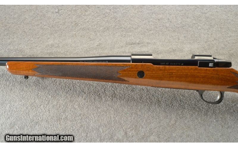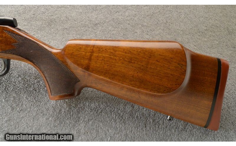 Description: Manufactured in Finland without sights. The receiver top is checkered and grooved for scope mounting. Beautiful walnut checkered pistol grip stock and forearm, raised left-handed cheekpiece, sling swivels and Sako hard recoil pad. Condition: Very Good to Excellent. .25-06 Remington SOLD Chambers: Bolt action repeater. Metal Condition: "Finish scuff, right side of barrel. Wood Condition: Fine scattered handling marks. Bore Condition: Clean with strong rifling. Barrels: 23.5" barrel. Triggers: Single. Stock Dimensions: LOP 14". Fore End: Checkered walnut. Butt Pad: Factory hard recoil pad. Weight: 8 LBS Sights: None. Item Location: Owatonna, MN |
