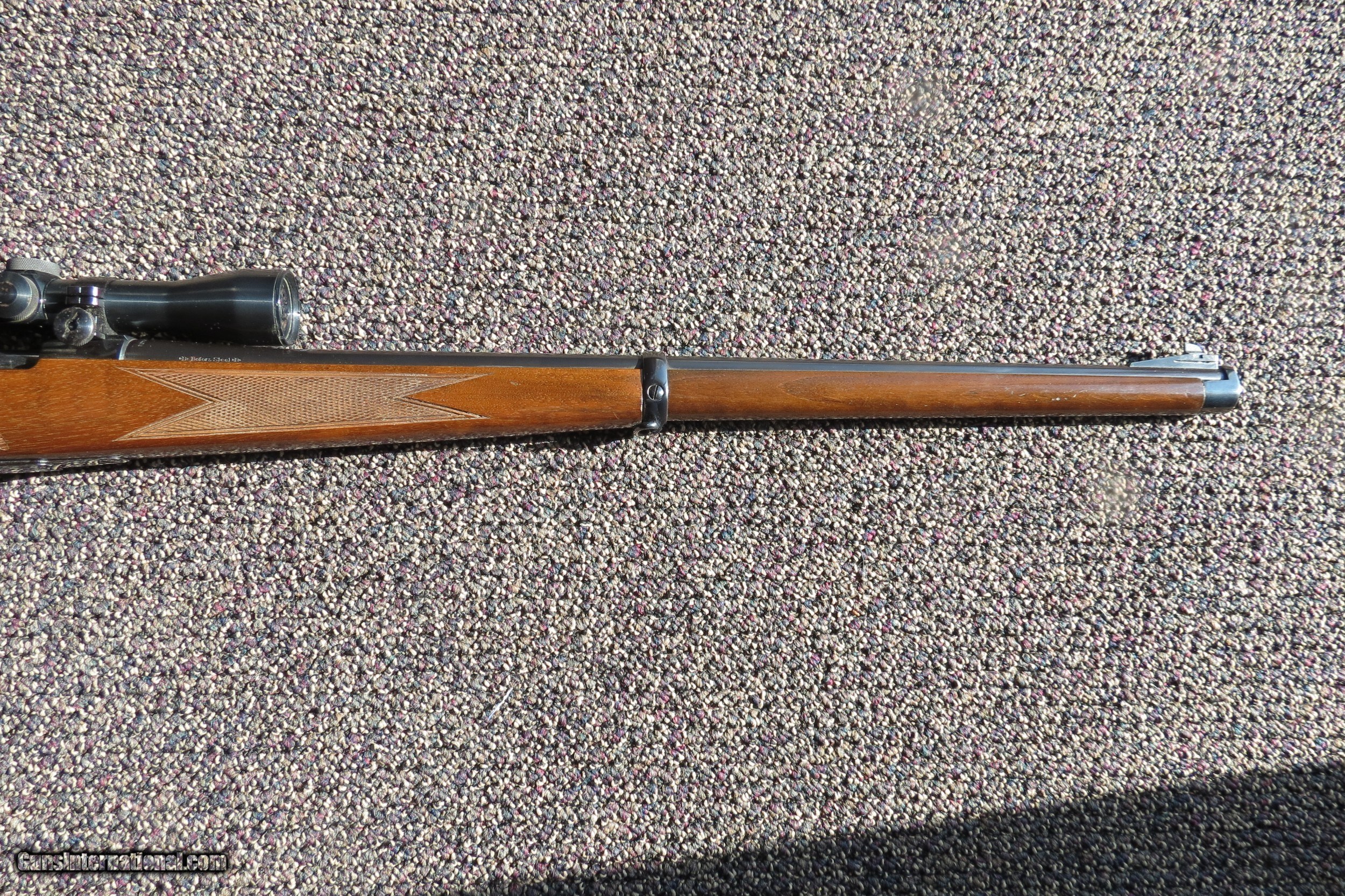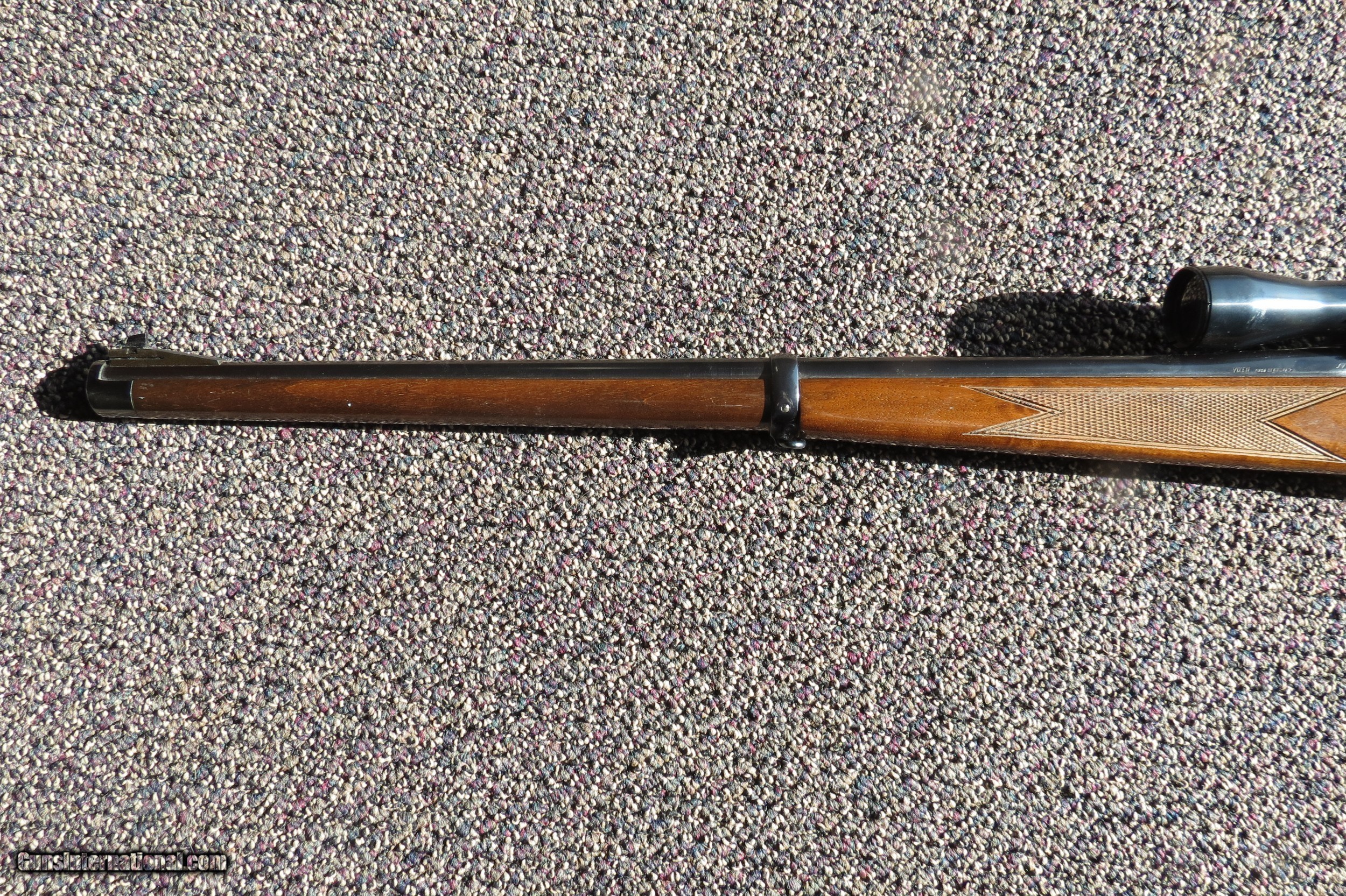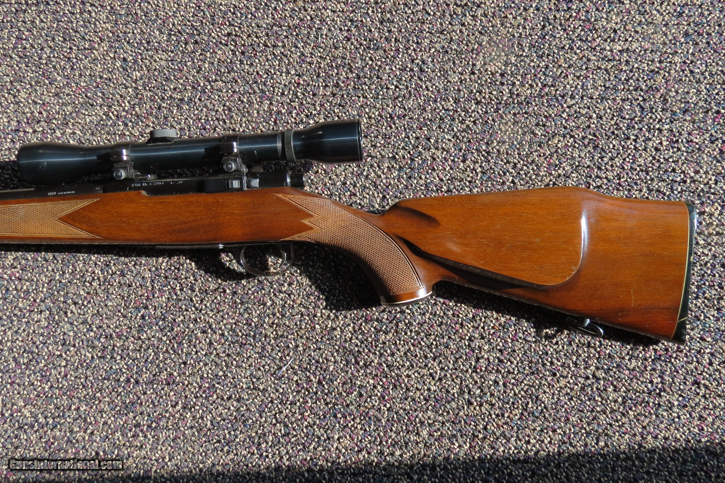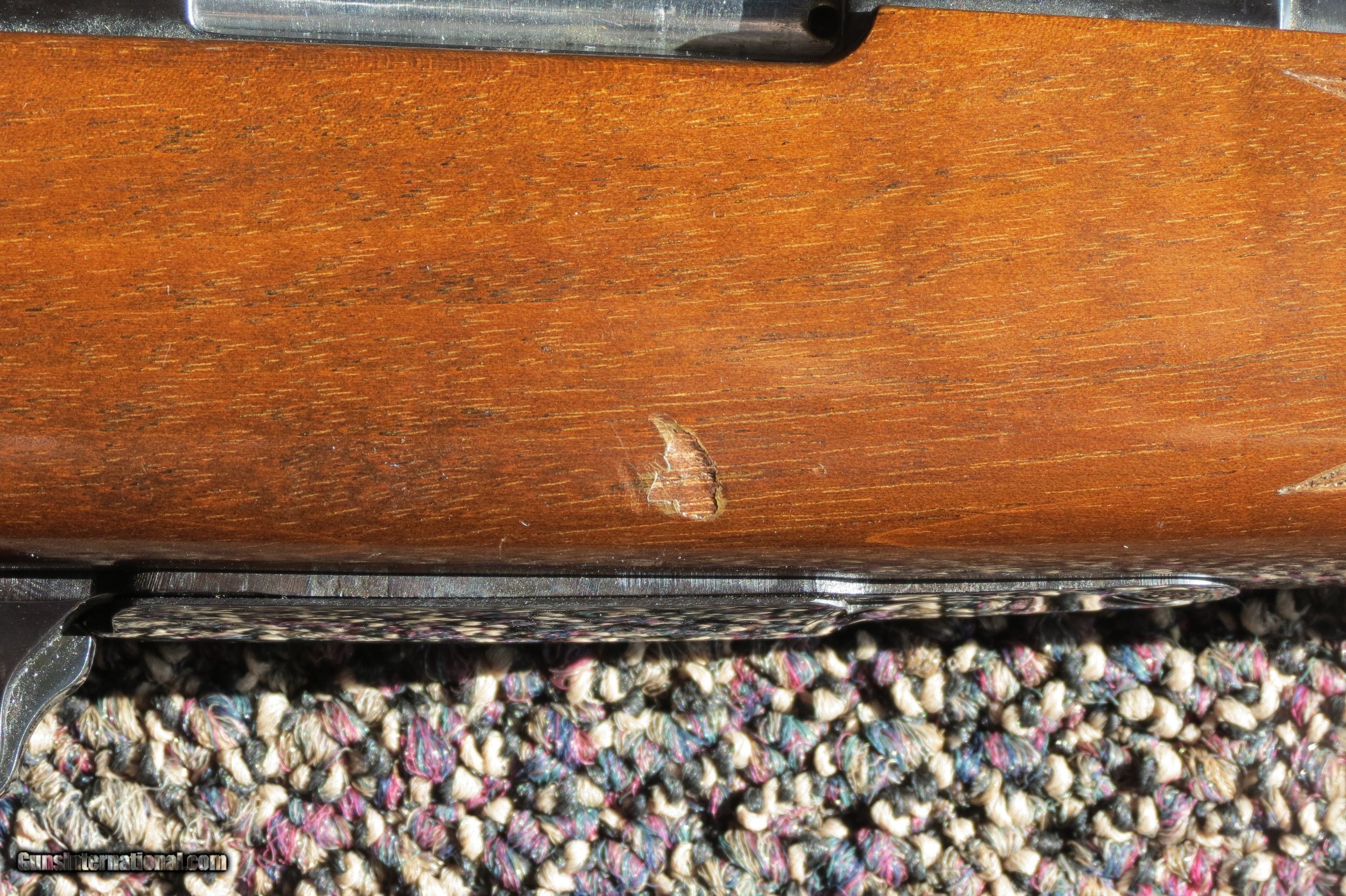Description: Rare find in Sako Vixen Mannlicher chambered in 222 Remington Magnum, Bofors Steel, 24" Barrel, 4X Weaver Scope, Sling swivels, Front sight, Hinged Floorplate. Raised cheek piece, Sako buttpad, Rifle shows a couple of nicks (see photos) and light blueing loss top middle of barrel appears to be gun rack rub. Rifle does not appear to have been fired much. Shipping/Insurance $45 w/hardcase add $15. SOLD Rifle Caliber: .222 Remington Magnum Manufacturer: Sako Model: Vixen Mannlicher Barrel Length: 24 Condition: Good to Very Good Metal Condition: Very Good w/ rub at top middle of barrel Wood Condition: Some dings see photos |