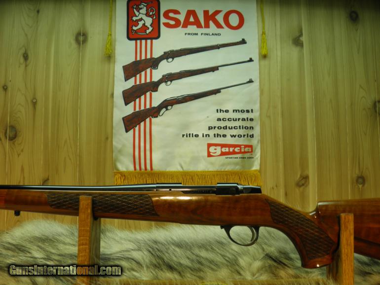 Description: SAKO VIXEN DELUXE GRADE LIGHTWEIGHT CAL: 17 REM: MFG: 1986 BARREL LENGTH 21 1/4", APPROX: WEIGHT 5 3/4LBS, OVERALL LENGTH 41", LENGTH OF PULL TO FACTORY RECOIL PAD 14", MAGAZINE CAPACITY 5 ROUNDS,CLEAN AND CRISP ADJUSTABLE TRIGGER WITH THUMB SAFTEY, INTEGRAL SCOPE MOUNTING RAILS FOR SCOPE RINGS, BEAUTIFUL DELUXE GRADE EUROPEAN WALNUT, FITTED WITH EXOTIC WOOD FOREND TIP AND GRIP CAP, WITH FOX HEAD INLAY, BEAUTIFUL HAND CUT, SKIP-LINE DIAMOND CUT CHECKERING, MONTE-CARLO STYLE CHEECK-PIECE AND COMB, SEMI PALMSWELL PISTOL GRIP, ATTACHED SWIVEL STUDS,FINISHED IN A HIGH QUALITY HIGH GLOSS, BOLT BODY AND GUIDE ARE BRIGHTLY POLISHED FOR SMOOTH AND EASE OPERATION, STEEL TRIGGER GUARD WITH HINGED FLOOR PLATE ARE ENGRAVED, AND SILVER OVER-LAID, METAL SURFACES ARE POLISHED TO A HIGH GLOSS AND EXPERTLY BLUED TO PROVIDE THE DEEPEST MOST BRILLIANTLY LUSTROUS MIRROR BLUE FINISH! ALL THESE FEATURES ADD UP TO MAKE SAKOS HIGH QUALITY DELUXE GRADE!! GUN WAS WELL MAINTAINED, WITH THE PREVIOUS OWNER PUTTING 25 FACTORY ROUNDS TRU IT, THE BORE IS NICE AND BRIGHT WITH SHARP PRONOUNCED RIFLING WITH NO WEAR AT THE MUZZEL. OVERALL CONDITION 99%+, A NICE LITTLE GEM, FOR PEST OR VARMINT REMOVAL. SOLD |