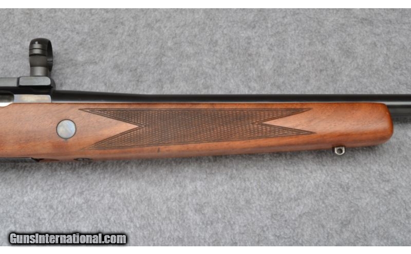 Description: Wood has been nicely refinished with a satin oil and and a non-original vented rubber pad fitted to buttstock. Rear sight is missing but rings and base are included. Bore is excellent. No box. Garcia import. SOLD Manufacturer: S/N 11XXX Caliber Info: .243 Win. Metal Condition: Excellent Wood Condition: Very Good Bore Condition: Excellent Barrels: 23 Triggers: Factory Stock: Checkered Walnut Pistol Grip Stock Dimensions: 13 3/4" LOP Fore End: Checkered Walnut Butt Pad: Brown Vented Rubber Weight: 8 LB Sights: Blade Front - Rings & Mount Included Item Location: Wheeling, WV |