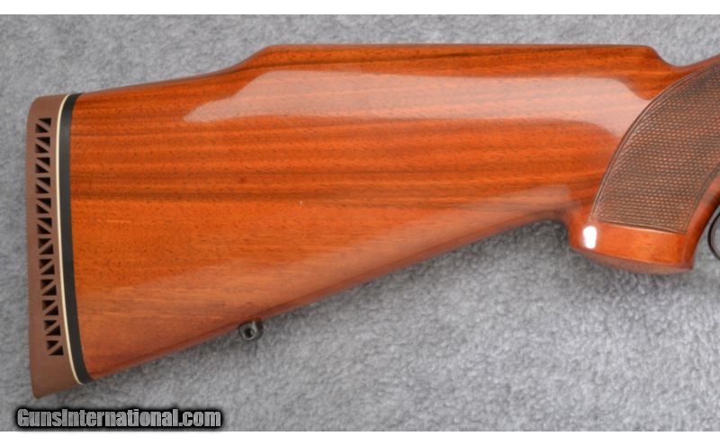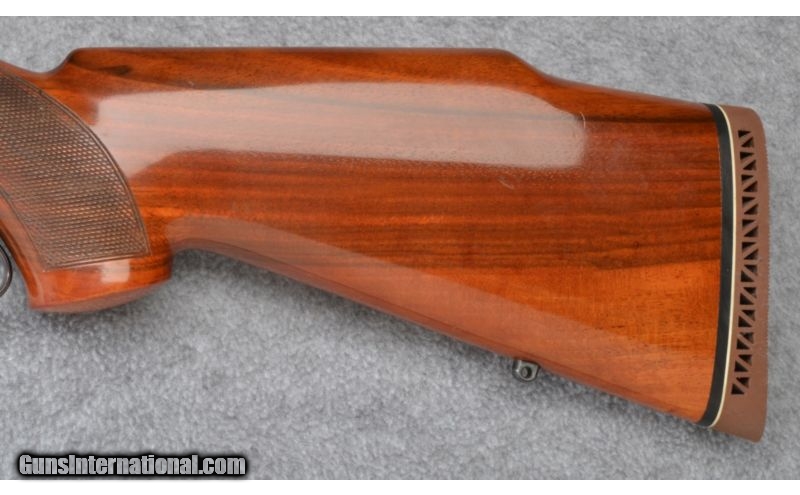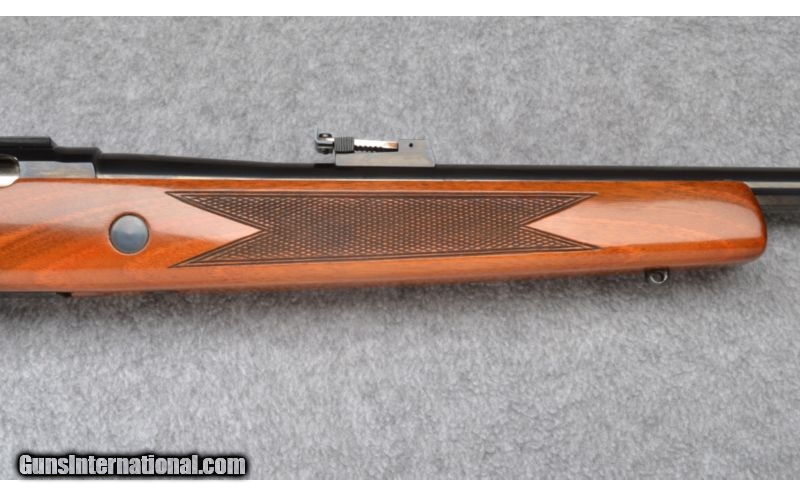 Description: Shows a couple light handling/use marks and remains excellent throughout with a non-original pad professionally fitted to buttstock. Complete with extra rings & bases. No box. SOLD Manufacturer: S/N 81XX Caliber Info: .308 Win. Metal Condition: Excellent Wood Condition: Excellent Bore Condition: Excellent Barrels: 23 1/2 Triggers: Original Stock: Checkered Walnut Pistol Grip Stock Dimensions: 14 3/8" LOP Fore End: Checkered Walnut Butt Pad: Brown Vented Rubber - Non-Original Weight: 8 1/4 LB Sights: Hooded Bead Front - Adjustable Notch Rear Item Location: Wheeling, WV |