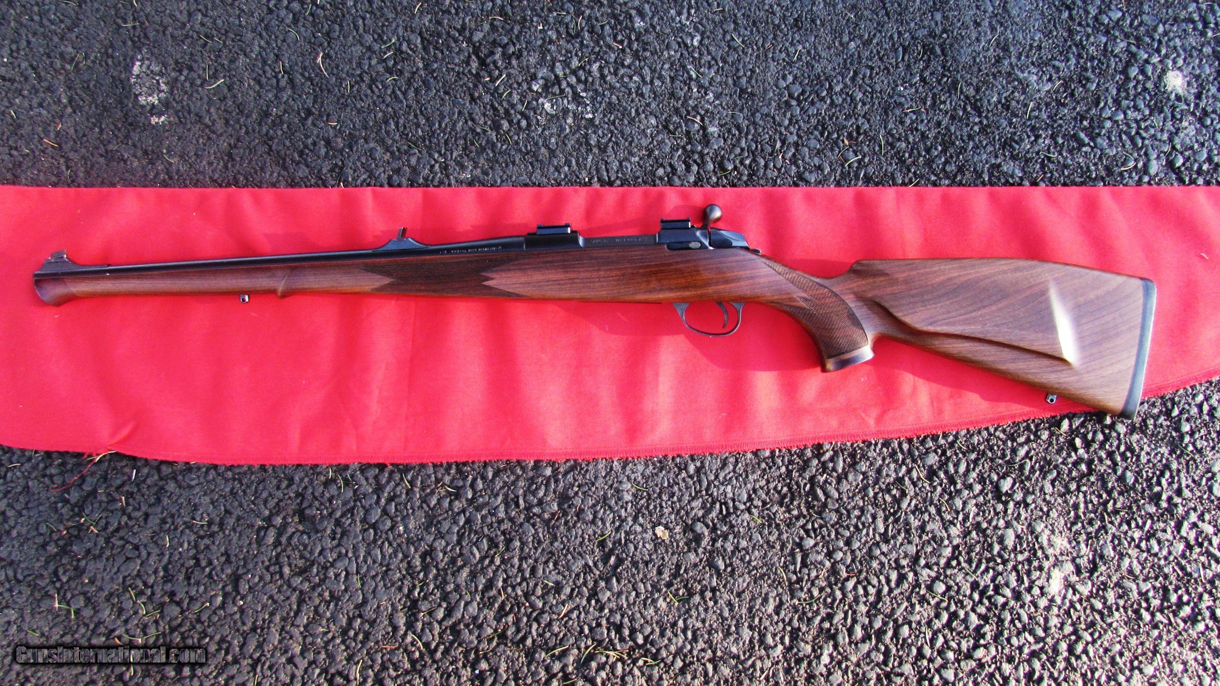 Description: This is a like-new Sako Bavarian Carbine, with the Mannlicher full stock. It is chambered in the 260 Remington caliber, making it an ideal stalking, treestand or blind rifle for the woods. The rifle was equipped with Talley bases and 1" rings and shot enough to get the scope dialed in. It has never been hunted, and remains in pristine shape. These rifle list for almost $2,400, with the Talley mounts over $100. The rifle will comes with its original box, manual, trigger lock, and everything else as supplied by Sako. Get this one at a savings. SOLD |
