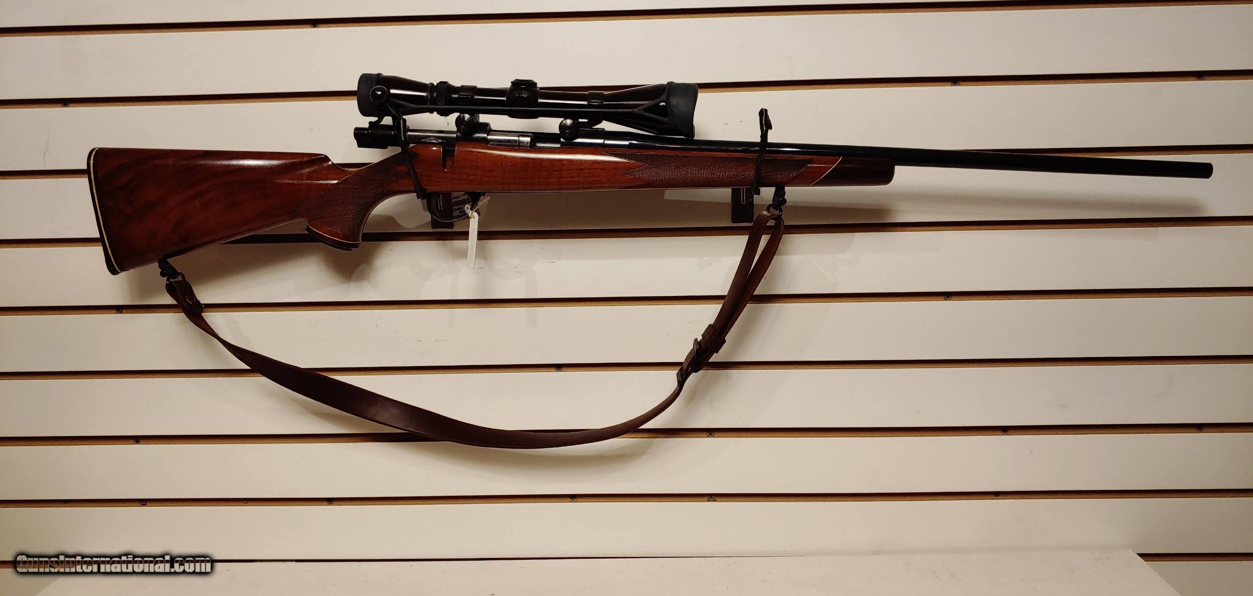 25" barrel leupold scope small scuff on bottom edge of stock leather strap