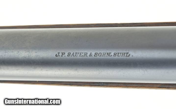 Description: " Sauer & Sohn Tell IV .32 Win caliber rifle. Interesting German made single shot rifle, Shoots .32-20. Rifle has double set adjustable triggers. Two-leaf rear sight and flip up tang sight. Bore has strong rifling with some pitting. Safety is on top of receiver. Very good overall condition. An unusual single shot rifle.