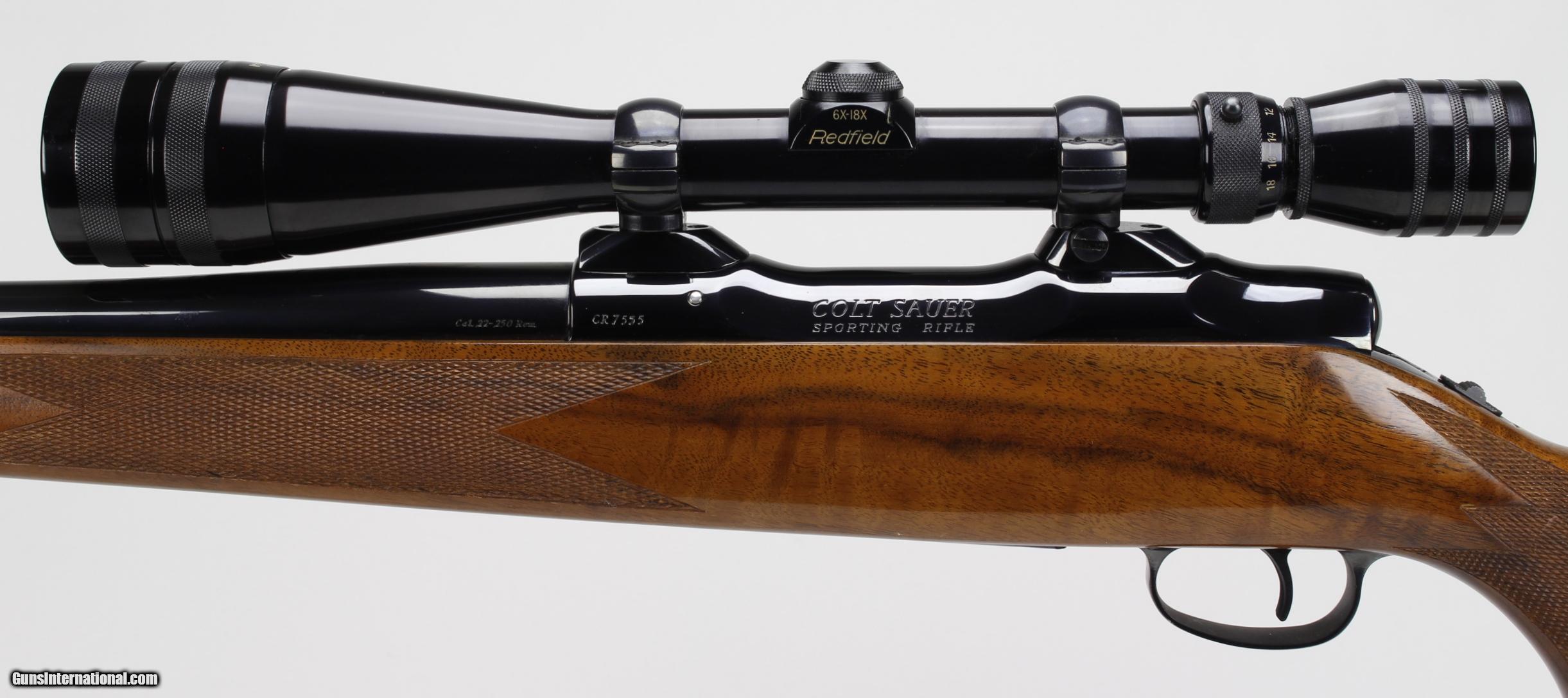 Description: COLT SAUER, MODEL R8006, 22-250, 24" Barrel, Redfield 6X - 18X Varmint Scope. Sauer Mounts & Rings, Gun fired only once, when scope was Zeroed. Made in 1978-79. Ships to Lower 48, $65.00 SOLD Manufacturer: COLT SAUER Model: R 8006 Serial Number: CR7555 Caliber Info: 22-250 Condition: LNIB Barrels: 24 |