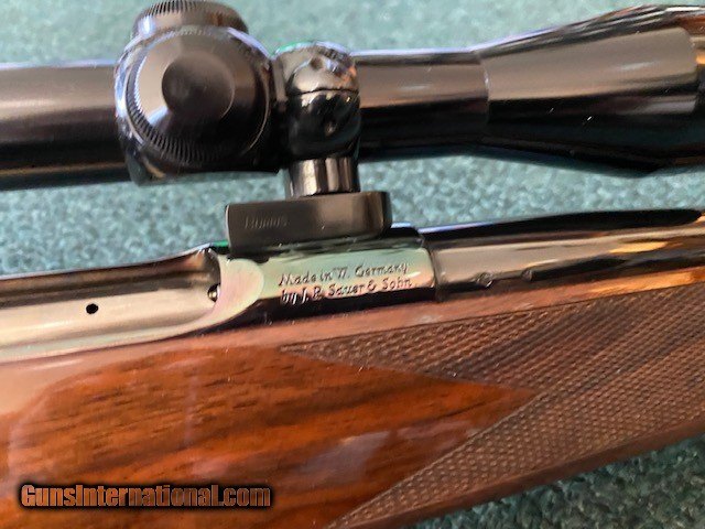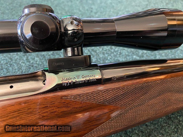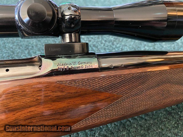 Description: JP Sauer & Sohn, 22-250 Rem, made in W Germany, Burris 3x9 scope with fine duplex, sling swivels, 24" barrel, 13 1/2" lengh of pull, 99.9% overall condition. Serial No. 6349. For further information call John at 941-748-7318. Price does not include shipping. SOLD |
