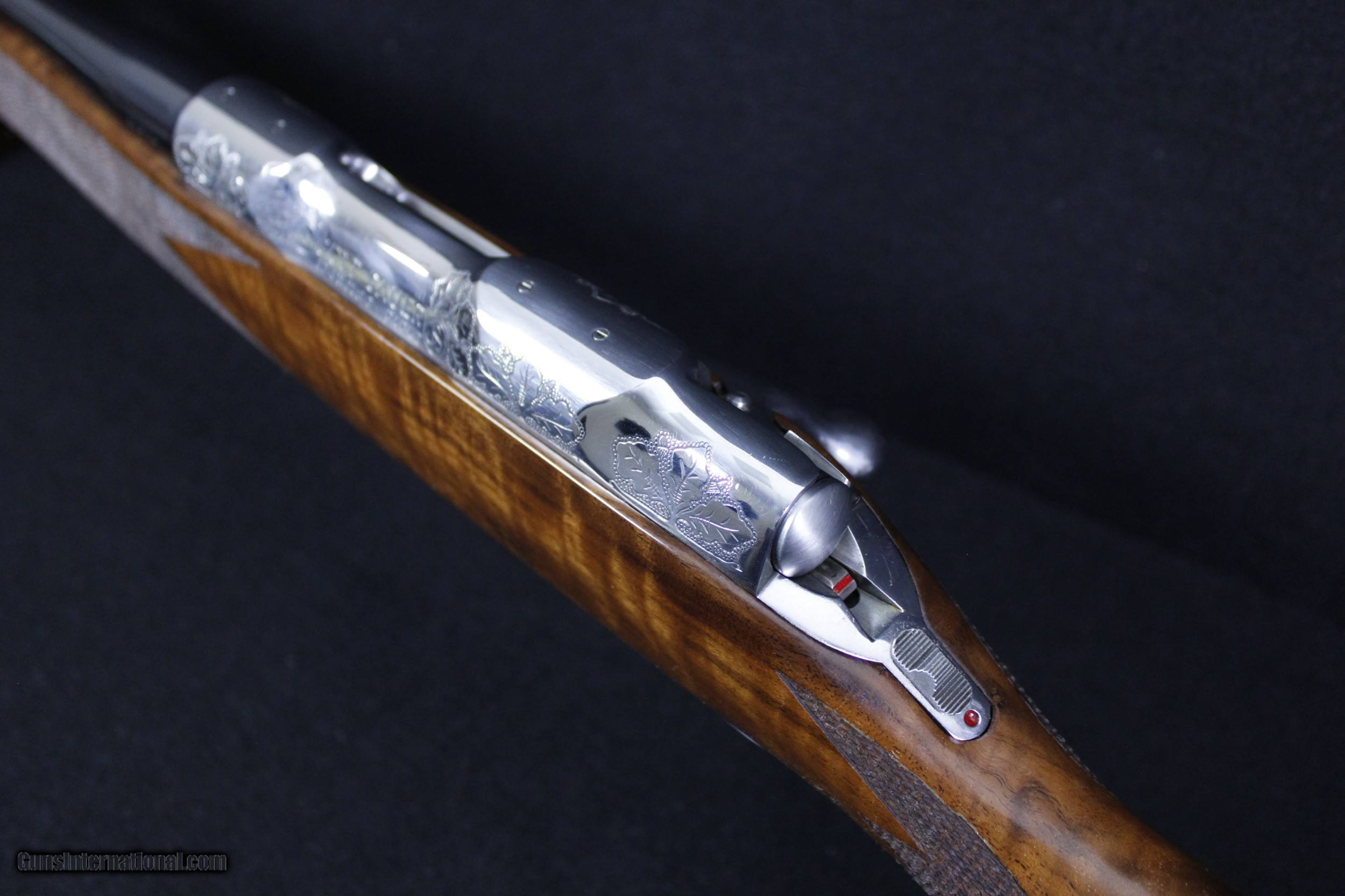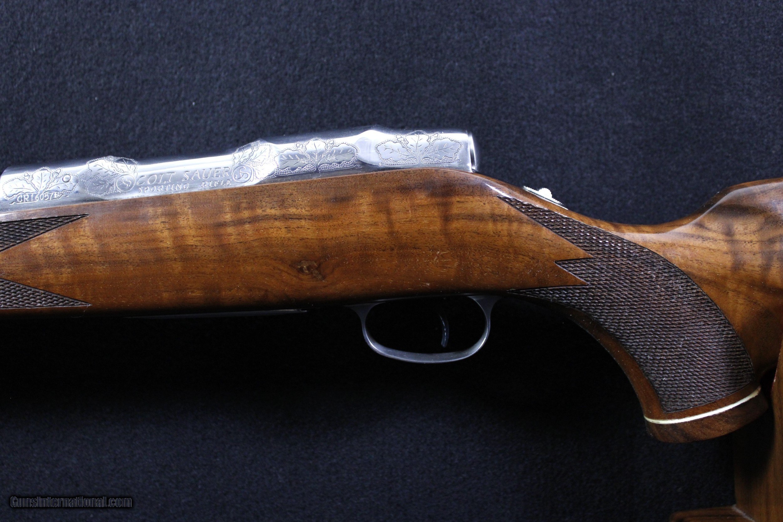 Description: Beautiful Colt/Sauer Grade III Sporting Rifle chambered in .243 Win. RIfle was manufactured in 1978 with knock out gorgeous wood. Excellent overall condition with the wood showing a couple of barely discernible handling marks. Bore is perfect. Mechanically excellent. Dimensions are as follows; BBL. 23 1/2" WT. 7lb 12oz. DIM. 13 1/2" L.O.P. On Sale!! Was $7995 Now $6399.95 SOLD |