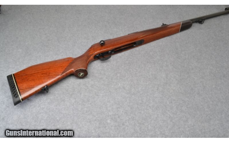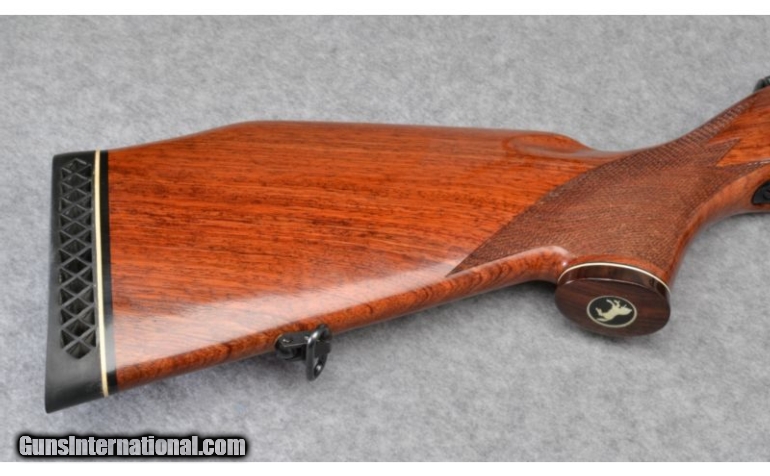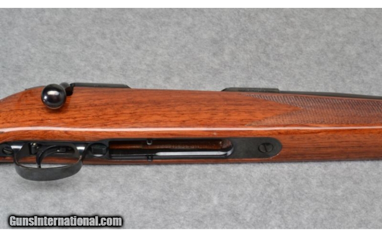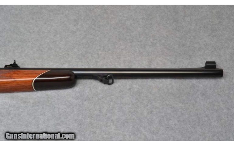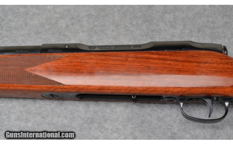 Description: With box and original rear sight. Appears unfired. SOLD Manufacturer: S/N CR22XXX Caliber Info: .458 Winchester Magnum Metal Condition: Excellent Wood Condition: Excellent Bore Condition: Excellent Barrels: 24 Triggers: Factory Stock: Checkered Stock Dimensions: 13 1/2" LOP Fore End: Checkered Butt Pad: Rubber Weight: 10 lbs Sights: Hooded Front/Williams Adjustable Rear Item Location: Columbus, OH |
