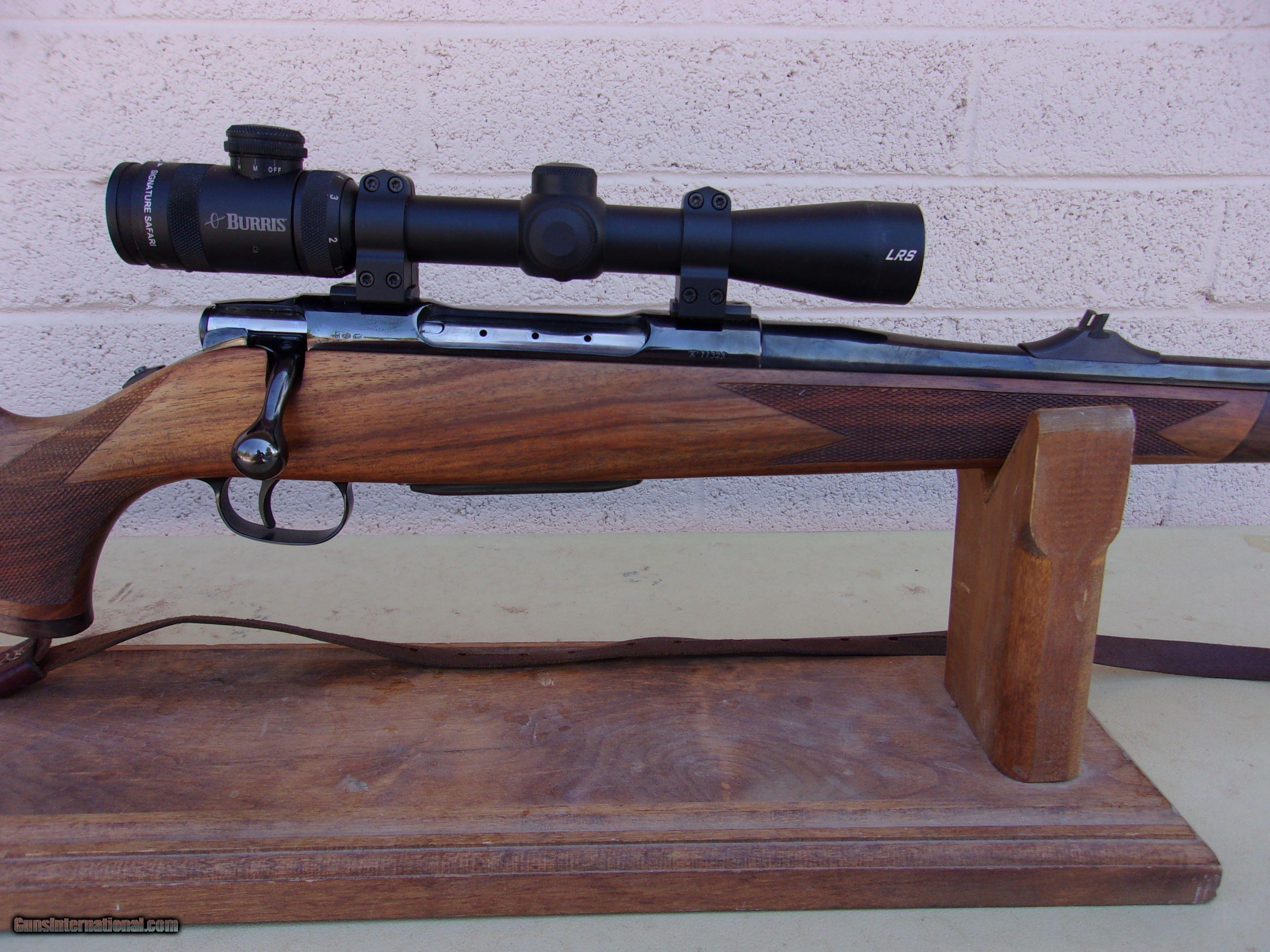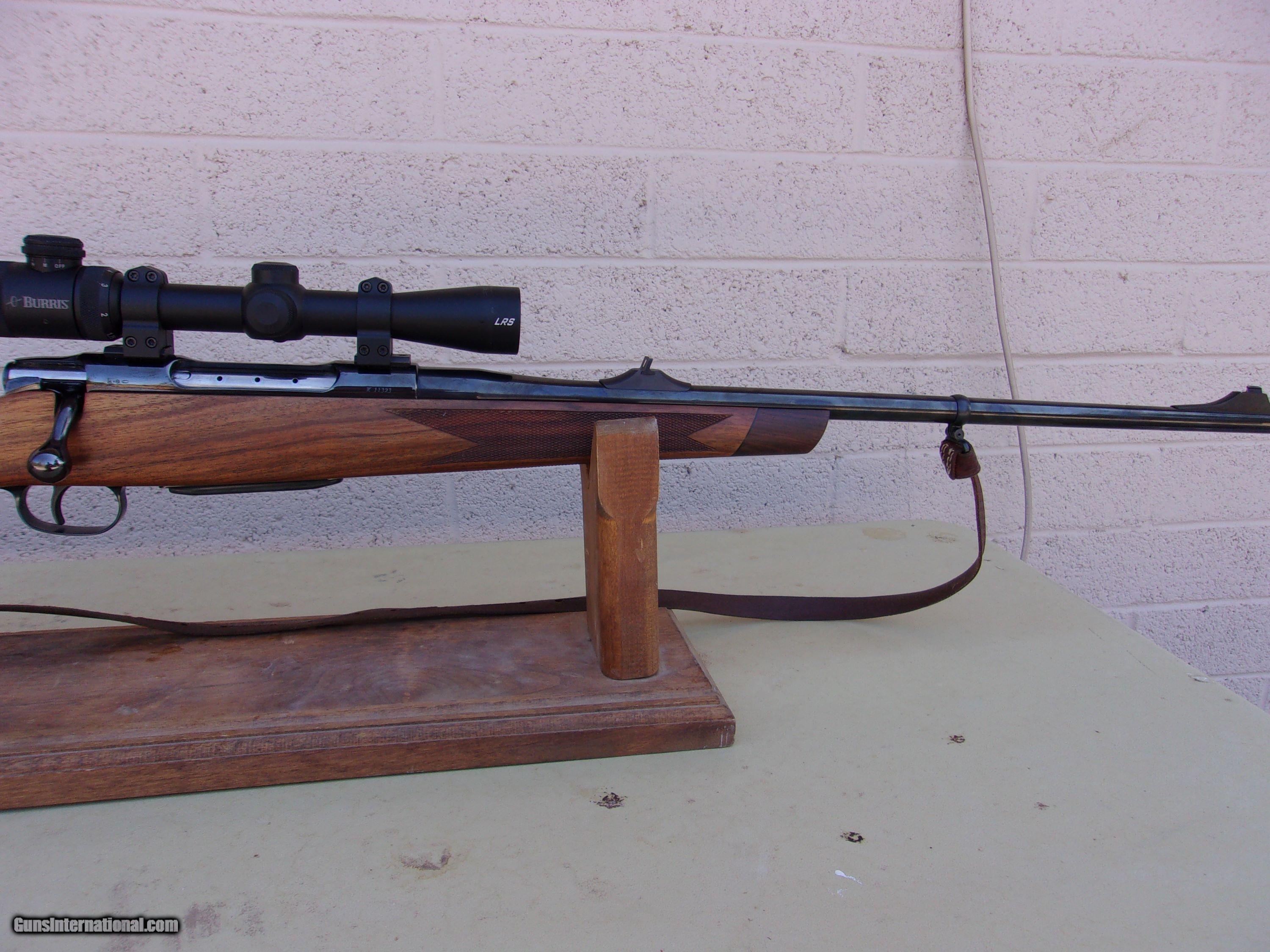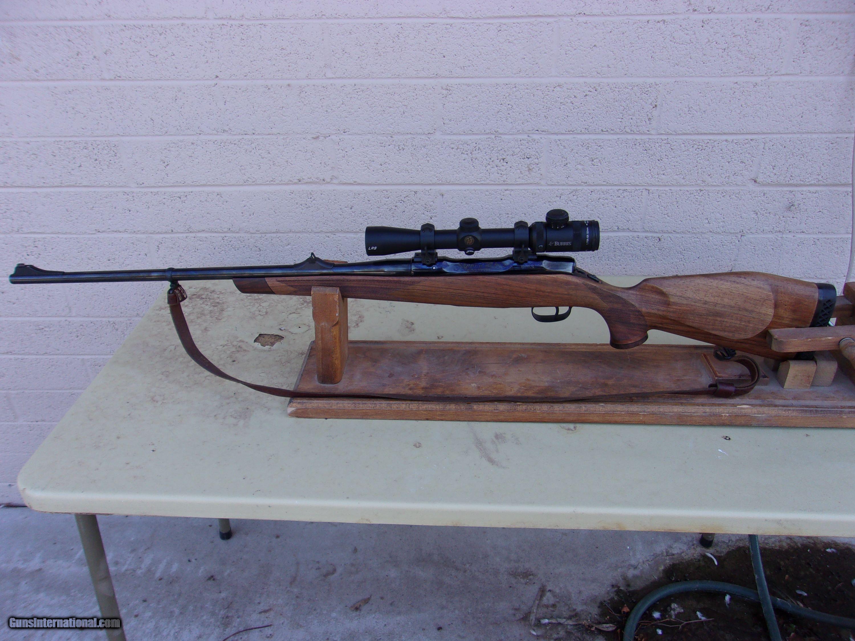 Description: J.P.SAUER AND SON MODEL 90 BOLT ACTION RIFLE SAFARI IN .375HH MAGUM CALIBER IN NEAR NEW CONDITION. STOCK IS OIL SATIN FINISH WITH CHEEKPIECE,ROSEWOOD FOREND AND PISTOL GRIP CAPS WITH BLACK LINE SPACERS PISTOL GRIP HAS PALM SWELL FOR COMFORT.BARREL HAS BAND FOR COMFORT AND HAS DETACHABLE MAGAZINE.HAS BURRIS 13/4 TO 5 POWER ILLIMATED SCOPE WITH QUICK DETACHABLE RINGS. SOLD Manufacturer: J.P. SAUER AND SON Model: 90 Caliber Info: .375HH Bore: EXCELLANT Condition: LIKE NEW Metal Condition: LIKE NEW Wood Condition: EXCELLANT Bore Condition: EXCELLANT Action: BOLT Triggers: SINGLE Manufacture Date: 1980 ES |