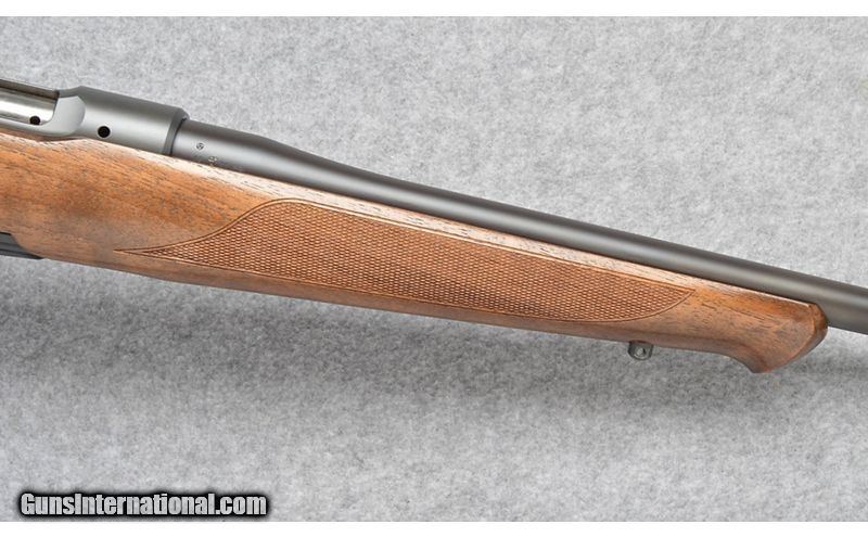 Description: Pistol grip walnut stock features EVER REST action bedding system. The DURA SAFE is the only direct firing pin safety that is activated by an ergonomic switch built in to the bolt shroud. With the touch of a button the safe opener allows opening of the bolt with the safety is still fully engaged. Detachable box magazine. Factory new, display rifle shows handling marks and light impressions on the stock. .30-06 Springfield SOLD Metal Condition: Satin Blue Wood Condition: Oil Finished Walnut Bore Condition: New Barrels: 21 1/2 Inch Triggers: Single Stage Stock Dimensions: 14 3/8 Inch LOP Fore End: Schnabel Tip Butt Pad: Factory Recoil Pad Weight: 6 lbs 13 oz. Sights: No Sights Item Location: Buda, TX |
