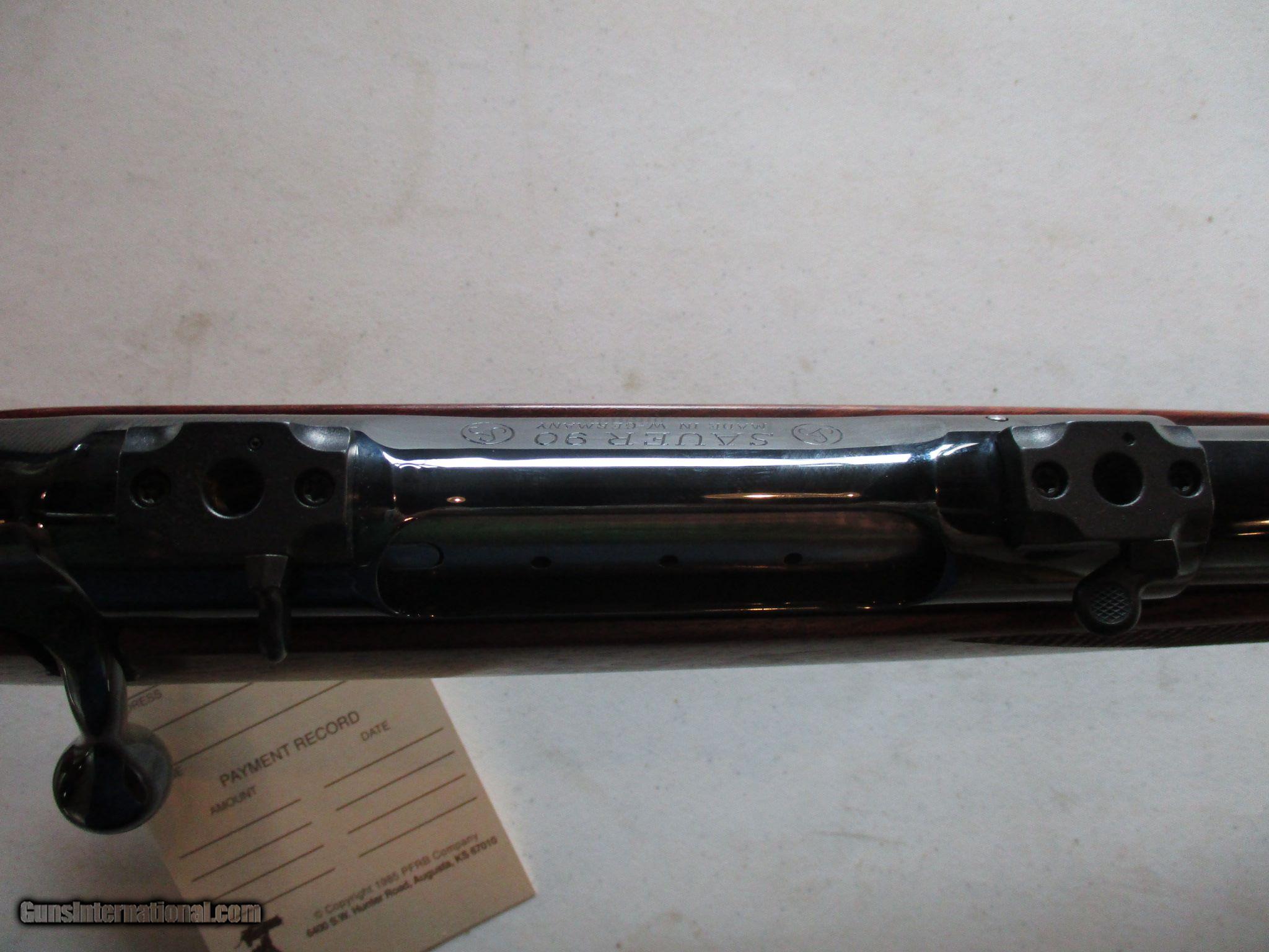 Description: Sauer model 90 Safari, 458 Win mag. Has a 26" Barrel and muzzle break. Nice clean gun with factory finish on both wood and metal. SN is K116xx. Email me if you would like these pics sent to you, they will come through bigger and better than on the listing page here. Email me with any questions. I am a store front dealer, and I will close s if the gun sells locally. Once ahas reached my reserve, I will pull it from my shelves. Please check your local laws to confirm it is legal to own in your state! Buyer pays $25 shipping and insurance to your FFL, in the lower 48. AK, HI or PR is extra. I will ship to California, NO PROBLEM! All my guns come with a non firing, 3 day unconditional return privilege, from the day UPS delivers to your dealer. Buyer pays shipping both ways if the gun comes back. I can add a new hard case by PLANO for secure shipping for $25 if the buyer wishes (highly recommended, cheap insurance, really helps keep the UPS monster from eating my guns!). No sales tax on guns ship out of Kansas, guns sold in Kansas are subject to Kansas sales tax. I am a licensed FFL, and will include a copy of my FFL with the gun for your dealers records. I will ship to a C&R if the gun is eligible (you look it up!). I will ship to California, but you need to confirm the gun is legal where you are, California or other. I am always looking for good clean, old original guns to buy, consign, or trade. WE ALSO TRADE FOR CLASSIC CARS AND TRUCKS! I will leave feedback as soon as the buyer leaves feedback on me. Email me with any questions, and good luck! SOLD |