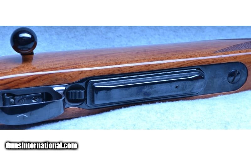 Description: COLT SAUER GRAND AFRICAN bolt action Sporting rifle .458 Winchester Magnum made by J. P. Sauer & Sohn in West Germany, spectacular in every way, an investment in precision, a perfect balance between exceptional hunting performance and the artwork of fine gun builders. The flawless deep bluing is an art to behold, the .458 is a class if it's own---GRAND AFRICAN! This masterpiece has rosewood for end, Maplewood spacers, grip cap with inlaid Colt rampant pony, sensational checkered walnut Monte Carlo pistol grip stock, factory original Colt Sauer recoil pad, 24" heavy barrel with factory adjustable open sights with front hood, detachable Colt Sauer magazine, LOP of 13 1/2", overall length of 44 1/2", weight: 10 pounds, 9 ounces, flawless glossy bore and serial number matching bolt... smoothest in the WORLD! This rifle has never had a scope mounted on it but is factory drilled and tapped for scope base. .458 Winchester Magnum SOLD Chambers: .458 WIN MAG Metal Condition: FLAWLESS Wood Condition: EXCELLENT Bore Condition: "PERFECT, GLOSSY Barrels: 24" HEAVY BARREL Triggers: FACTORY SINGLE Stock Dimensions: CHECKERED PISTOL GRIP WALNUT 13 1/2" LOP Fore End: CHECKERED WALNUT Butt Pad: COLT SAUER RECOIL PAD Weight: 8 Lb 4 Oz Sights: HOODED RAMP FRONT SIGHT / WILLIAMS ADJUSTABLE REAR SIGHT Item Location: Grandville, MI |