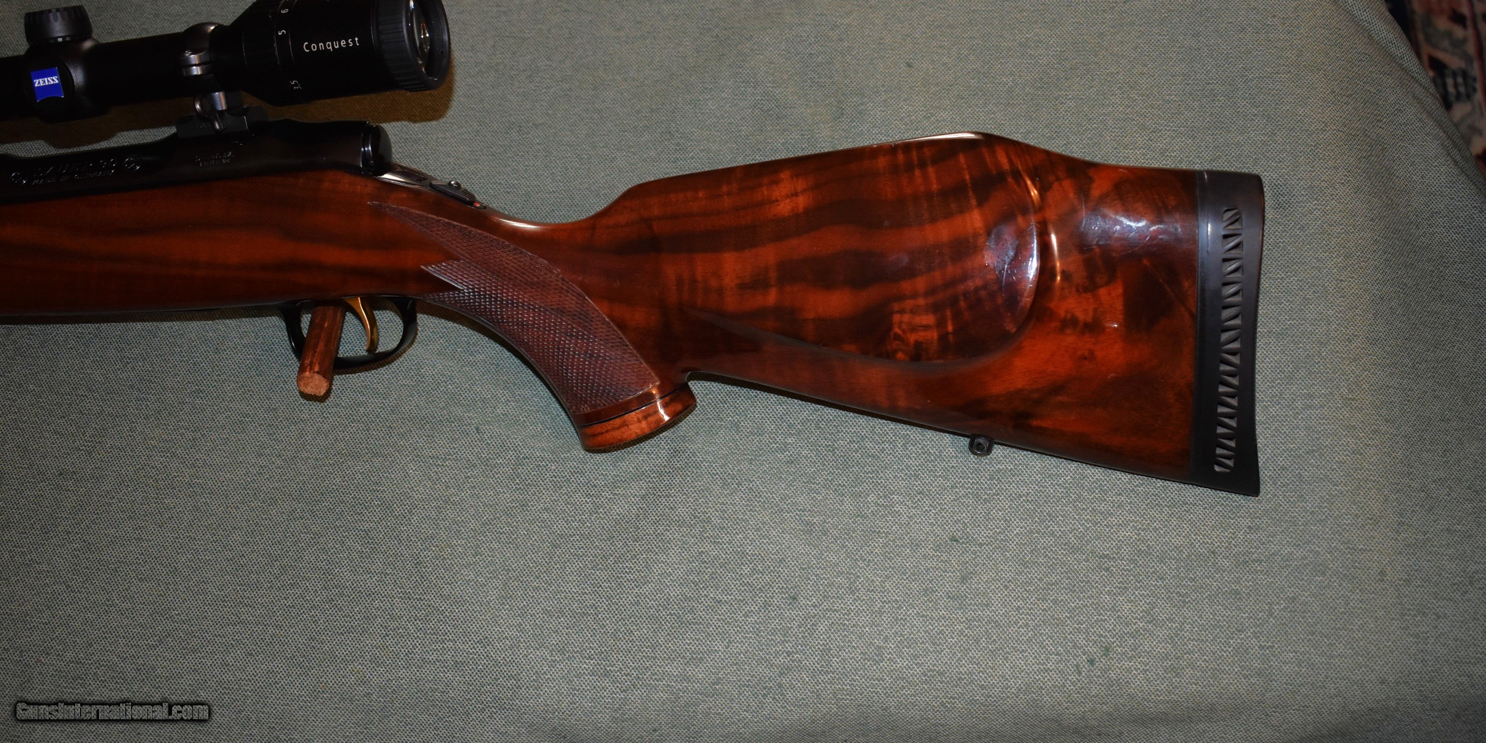 Description: JP Sauer model 90 Luxe sporting rifle in 270 Win. This rifle is in mint as new original condition. It retains 100% of the original blue and wood finishes. The stock is highly figured European walnut with excellent fine checkering. The rifle has a Zeiss 3.5x10 Conquest scope installed. A great all around big game rifle set up and ready for the field. Price includes shipping to your FFL. Rifle Caliber: .270 Winchester Manufacturer: JP Sauer Model: 90 Luxe Serial Number: K25350 Barrel Length: 24 Condition: mint Metal Condition: mint Wood Condition: mint Bore Condition: mint Barrel Type: JP Sauer Action: Bolt Butt Pad: Factory Recoil Pad Optic: Zeiss 3.5x10x44 Price: $3,000.00 Contact Seller |