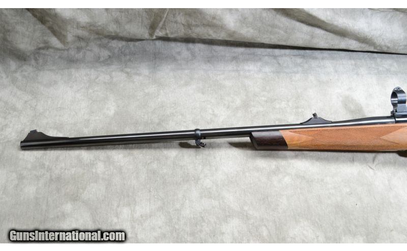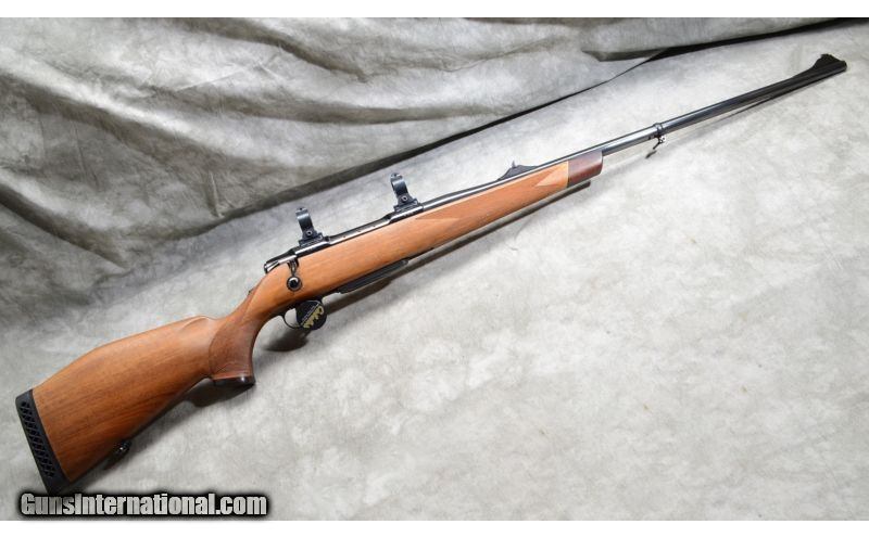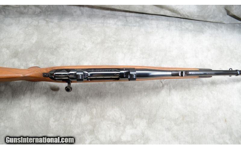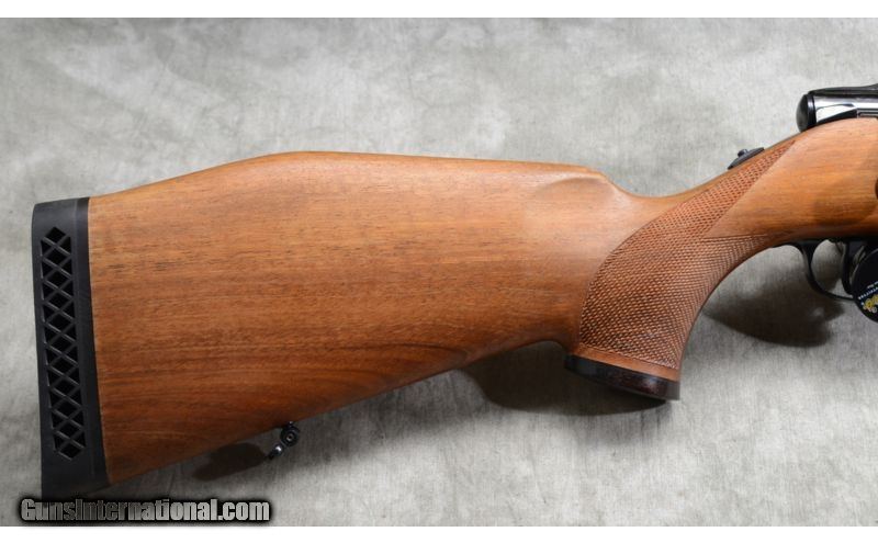 Description: This rifle features high gloss blue metal work, detachable magazine, high profile post and notch open sights, drilled and taped for scope and mounting hardware for scope, Bavarian pattern buttstock with sharp checkering and pistol grip with palm swell. SOLD Caliber Info: 7MM Remington Magnum. Chambers: 3 round detachable magazine. Metal Condition: Excellent. Like new condition. Wood Condition: Excellent with very few signs of use. Bore Condition: Shiny and bright. Barrels: 26 Inch - high polish blue. Triggers: Grooved factory "set" trigger. Stock: Bavarian style checkered walnut with palm swell pistol grip and Rosewood tip and grip caps. Stock Dimensions: 14 - 1/8 Inch LOP. Fore End: Slim profile with tip cap. Butt Pad: Ventilated rubber pad. Weight: 8 lb. - 4 oz. Sights: High profile post and notch open sights. Drilled and tapped for your choice of scope. Extras: Rings, bases, and one magazine total. Item Location: Rogers,, MN |