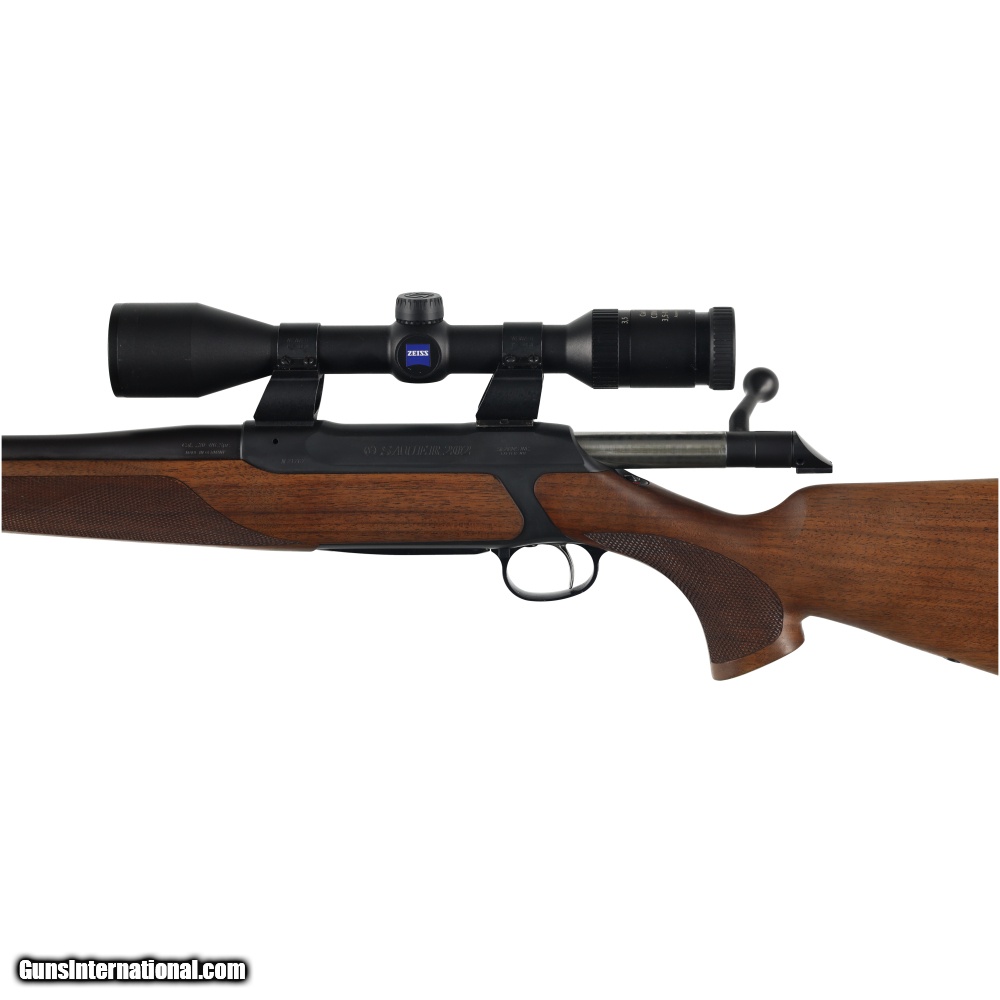 Description: The Sauer 202 is a light weight bolt action rifle with a modular design, imported by Sig Arms from 1993 to 2015. This example is in very good condition with almost no external signs of wear. The bore is clean with strong and sharp rifling. mounted on top of this rifle is a Zeiss Conquest 3.5-10x44 optic with standard duplex reticle. Manufactured in: Germany Hand: Right Hand Action Finish: Gray Action Description: Bolt Action Metal Finish: Original Barrel Length: 24 Inches Barrel Condition: Very Good Stock Finish: Original Stock Condition: Very Good Type of Butt: Factory Pad Pad Thickness: 5/8" Grip: Pistol Forend: Checkered Schnabel Extra Barrels: No. SOLD Manufacturer: Sauer Model: 202 Caliber Info: 30-06 Condition: Preowned Metal Condition: Very Good Action: Bolt Action Triggers: Single Fore End: Checkered Schnabel Butt Pad: 5/8 LOP: 13 3/4 Finish: Original Weight: 8.8 lbs Extras: No. Case: NONE |