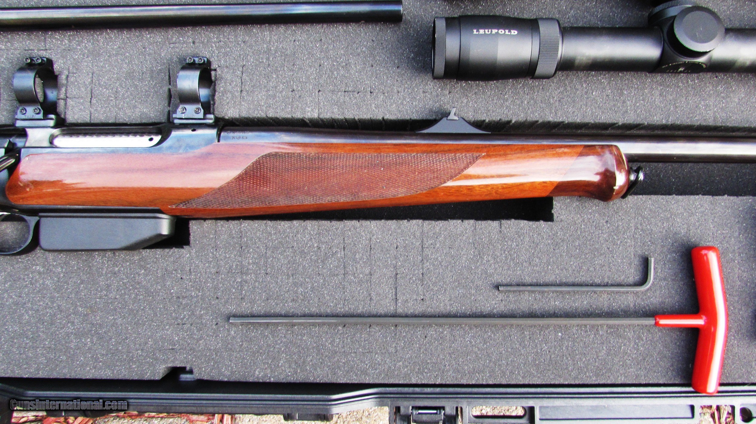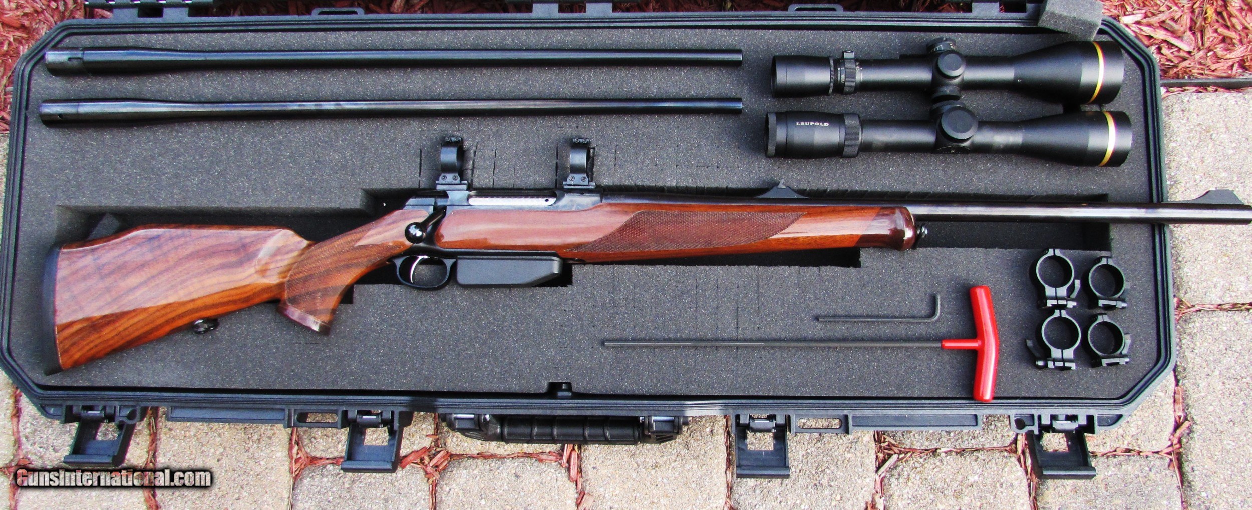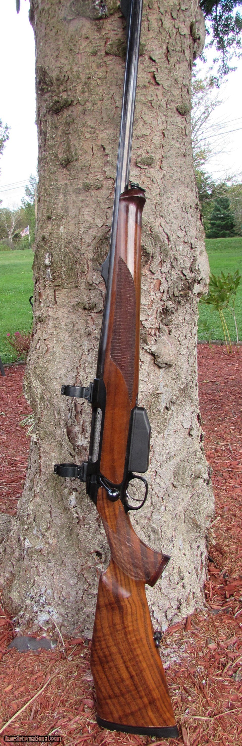 Description: This is a Sauer 202 Supreme Grade rifle in near-perfect condition. I've made it into a travel set, with barrels in 375 H&H, 300 Win Mag, and 7mm Rem Mag. I had the 375 and 7 mag barrel initially, and found a 300 Win Mag that was marked up pretty well. I sent it out to be bead-blasted and Duracoated it when I got it back to better match the deep blue of the original metalwork. The rifle has the extended magazine with makes it 5+1 as I remember. The rifle will come with with the 3 barrels. a set of Talley rings in either 1" or 30mm, screw-on or QD (your choice), an extra set of open sights, plus the takedown and barrel tools, and a cut-to-form travel case with 2 hasps and the padlocks to secure the case. If you wish, I can also add a scope or scopes, extra Talleys, ammunition, etc. This set should cover just about anything you might want to hunt. SOLD |