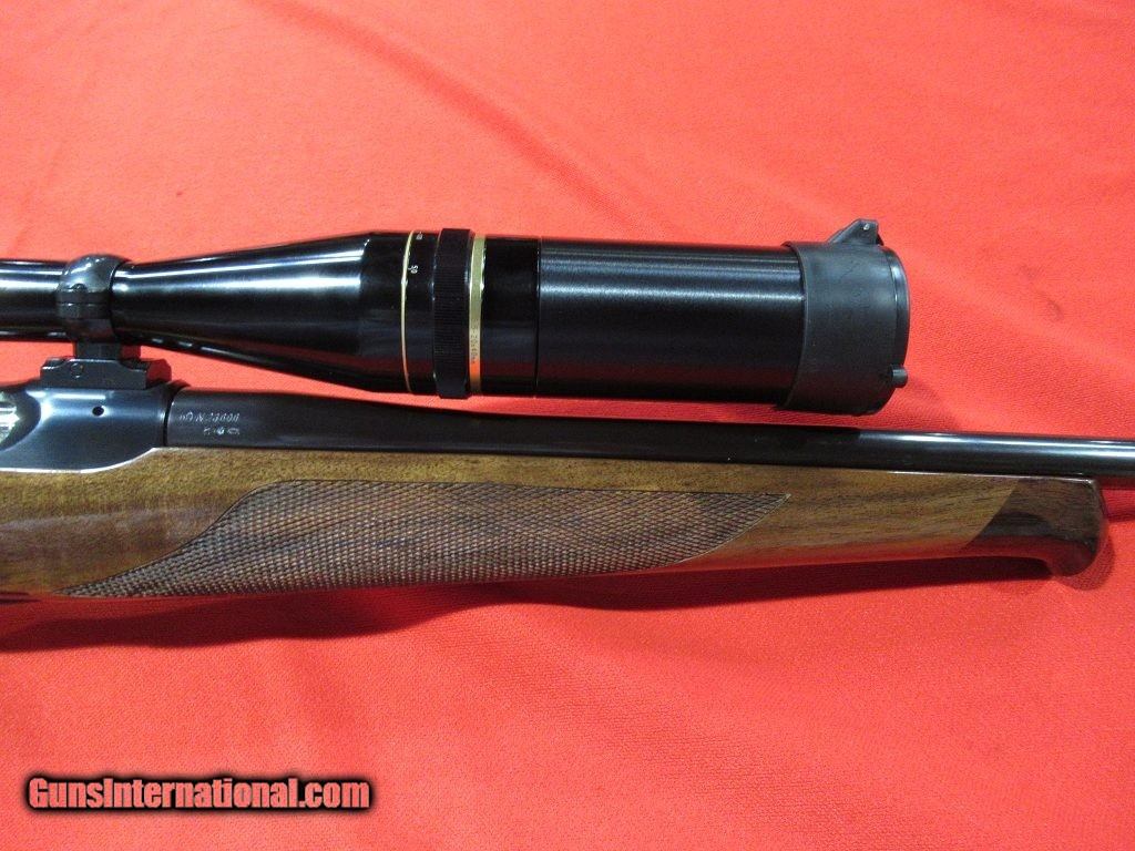 Description: AS NEW CONDITION HAVING NEVER BEEN FIRED BY THE ORIGINAL OWNER. High grade checkered walnut stock with rosewood forend tip and grip cap, high gloss blue finish on the receiver and barrel, detachable box magazine, and topped with a Leupold VX-III 6.5-20x40mm scope on Leupold rings and bases. This comes with the factory box, paper work, and tools. MINT CONDITION!!! SOLD |