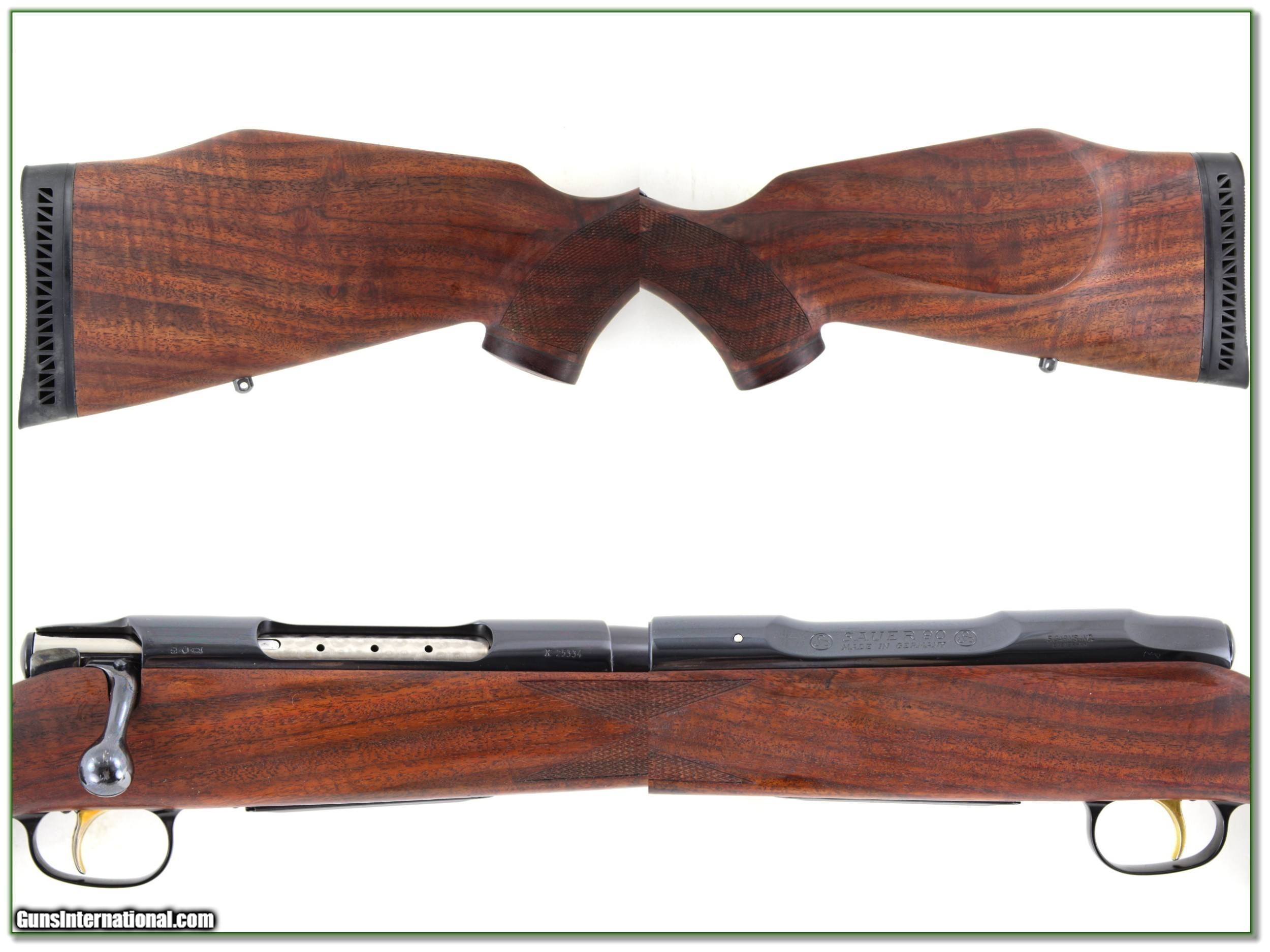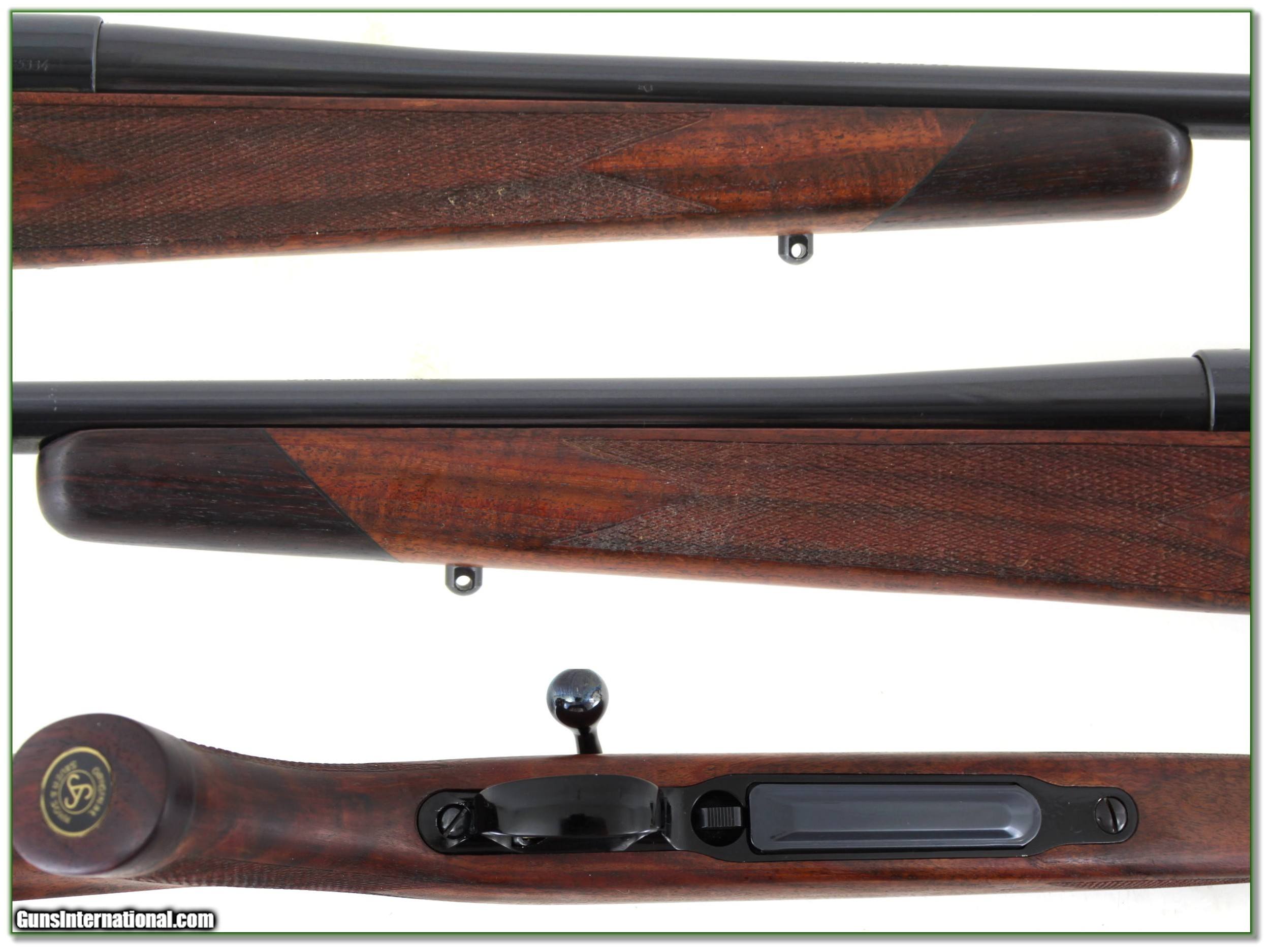 Description: Shooters and collectors, this is a top condition Sauer 90 Supreme in the hard to find 6.5x55 Swed. Its owner bought it in the 90s and says 4 to 5 rounds range fired at the most. The blue is a high gloss and the oil finished wood has outstanding figure! It comes with Leopold quick release bases and factory manual. It will make a fine addition to your collection or be a high-end hunting gun! Either way, it is a real Shooting Investment. I am selling this one on consignment and as such lay-a-way can’t be used. It does of course have the standard 3-day inspection. Shipping and insurance is $59. Please email me with any questions or larger pictures. (Consign your quality firearms with Shooting Investments for only 12%! Let me know if you have any you would like to sell!) 21-0788 Payment: Payment is by Money Order, Cashiers Check or Personal Check. I can now also accept Credit Cards (MasterCard, Visa, Discover & American Express) with a 3% convenience fee. Shipping: The shipping charge will be listed in each description. It is $39 for most firearms. Some heavy guns or those insured for over $2000 will be higher. Shipments to Alaska and Hawaii are higher because air shipment is required. Most firearms are shipped on Tuesday and Thursday and usually in 5 days of receipt of payment. We package all shipments carefully and insure them. Optics are shipped Priority Mail and most other non-firearm shipments are shipped First Class. Returns: Our return policy is simple. If for any reason you are not pleased with your purchase, you may return your item for a full refund of purchase price. Ammunition cannot be returned. It is important to us that you are happy. Guns cannot be fired or dissembled before returning them and they must be returned in the same condition as received. Notification of a return must occur with-in 3 days of receipt at your dealer. Shipping, convenience and dealer fees are not refundable and are the responsibility of the buyer. Lay-a-way: If needed, we offer a 60 day lay-a-way option on most firearms. It is 1/3 now, 1/3 in 30 days and 1/3 in 60 days. Lay-a-way firearm sales are final and if not completed the first payment cannot be returned. Consigning your firearms with Shooting Investments: We will help you get top dollar for your firearms. While most local guns shops charge 20% or more, our fee is only 12% with a minimum of $75. At your local gun shop it might take months to sell. Selling on-line provides instant access to thousands of interested buyers. You won’t find any other on-line dealer willing to sell your firearms for only 12% or listing every gun on 3 separate s. Selling through an House typically costs the seller 15% and the buyer an addition 15% (so 30%) and you have to wait several months to sell and longer to receive funds. If properly priced, we will sell your firearms in a few weeks. Send us an email or give us a call and we’ll explain how easy it is for you to get top dollar. Trading: Trading for use is really just buying your gun to re-sell. If you have a gun you want to trade, please email a picture and we will let you know what we can give or it. You will always get more if we sell it for you on consignment. Help for California Buyers: We are happy to ship to California. It is the buyer’s responsibility to make sure any item you buy is legal in your state. We are also happy to help with your purchase of a firearm from someone other than us. If you see a gun you would like to buy but the seller can’t or won’t ship to California they can ship to use and we’ll then ship it to your California dealer. The cost for this service is only $30 + shipping. Let us know if we can help! SOLD |
