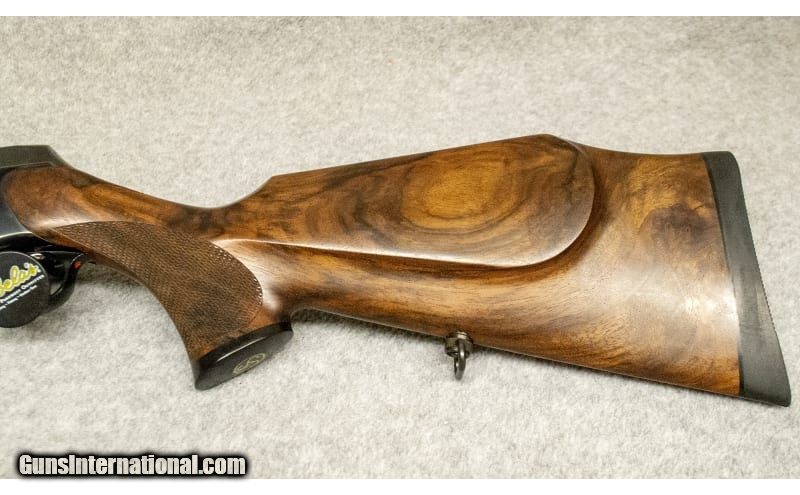 Description: Steel receiver, modular design allowing barrel change within 2 minutes, dual safety, two-piece figured walnut stock, cocking indicator, detachable 3 shot mag, right-hand action, 7 1/2 lbs. Gorgeously built rifle with a smooth action and a light trigger. Stock features include a right-handed palm swell and a Monte Carlo cheekpiece. .375 H&H Magnum SOLD Chambers: .375 H&H Magnum Metal Condition: Excellent Wood Condition: Excellent Bore Condition: Excellent Barrels: 24 Sights: Fixed Irons on Barrel Item Location: Greenville, SC |