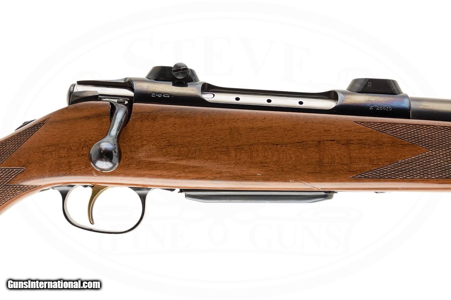 Description: SN# K266XX 26" PLAIN BARREL LEUPOLD VARI-X III 3.5-10X40 SCOPE SATIN FINISH ROSEWOOD FOREND AND PISTOL GRIP CAP GOLD TRIGGER RECOIL PAD MONTE CARLO EXCELLENT CONDITION WITH SOME VERY LIGHT HANDLING-USED 8LBS 13 OZ W/ SCOPE 7LBS 13 OZ W/OUT SCOPE 13 5/8" LOP SOLD |