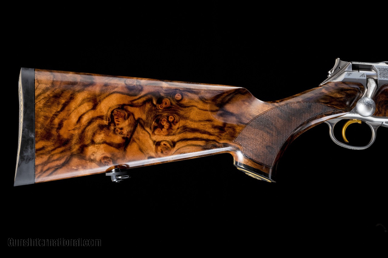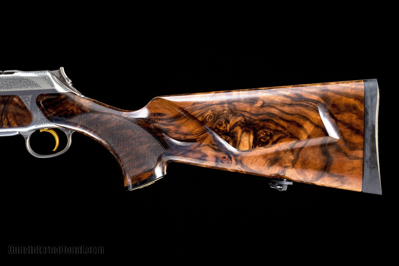 Description: Confidently stylish, serene and masterful. With the Elegance the superior concept of the S 404 is paired with a deluxe Grade 5 walnut stock that offers the true aficionado a timelessly beautiful bolt-action rifle of technical and artistic perfection.PREMIUM COMES STANDARDCERGO LUX stock in Grade 5 figured walnutAviation-grade high-alloy aluminum receiverPerfectly placed ergonomic manual cocking slide on the bolt shroudEasily replaceable bolt head makes switching from Standard to Magnum calibers a snapTwin ejectors for a precisely perpendicular ejection pattern6-lug bolt locks directly into the barrelJeweled bolt bodySAUER Quattro trigger with choice of four trigger pull weights: 550 g (1.2 lbs), 750 g (1.7 lbs), 1000 g (2.2 lbs) and 1250 g (2.7 lbs)Infinitely adjustable trigger blade with 8 mm (0.3 in) adjustment range for length of pull and a left-to-right swivel range of 5 degreesSAUER Universal Mount (SUM) integral to with receiver for an extremely low build heightSAUER universal key (SUS) integrated into the front sling swivel for forend and buttstock removal, barrel removal or replacement, and selection of trigger pull weightMagLock magazine safety SOLD Manufacturer: J.P. Sauer and Sohn Caliber Info: 300 Win Mag Barrels: 24 Action: Bolt Triggers: Single Gauge Info: 300 Win Mag Stock Comb: N/A Stock Heel: N/A Stock Cast: N/A LOP: 14-3/8 Rib: N/A Weight: 7.08 |