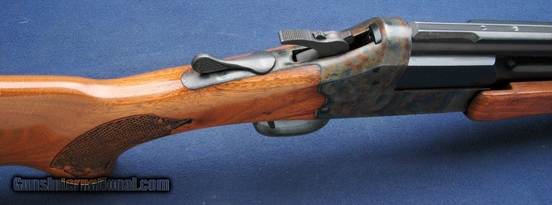 Description: Beautiful used example of this very collectible over under combo gun. Top barrel is 30-30, bottom barrel is 20 gauge with a 3" chamber. Very clean in and out. Bores are excellent. Color case is as you see it. Crack at wrist of stock professionally repaired and solid. Most of these got used hard and put up wet, so finding one in this condition is not easy. Won't last long. $50 shipping to the lower 48, 3% surcharge for using a CC. If you choose to pay with a personal check, we will hold the item for up to 10 days to make sure that it clears. Please expedite such pymts as we will hold an item on your word for 5 days. SOLD Rifle Caliber: .30-30 Winchester Shotgun Gauge: 20 Gauge |
