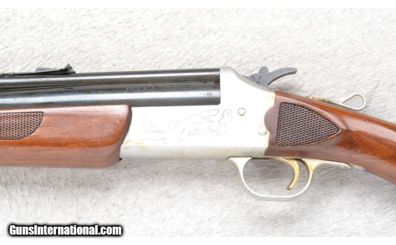 Description: This Savage Model 24E-DL is an over and under rifle /shotgun combination in .22 Long Rifle and 20 Ga. It has 24 inch barrels. A blade front sight and an adjustable notch middle sight. The 20 Ga. has a 3 inch chamber and fixed Modified choke. The butt stock is a smooth grip hardwood pistol grip with a black cap. The forearm is a checkered grip hardwood. The receiver is engraved with fox and grouse. .22 Long Rifle/20 GA SOLD Chambers: 3 inch. Metal Condition: Fair. Has freckling and varnish spots. Wood Condition: Fair. Has some light handling marks and appears to have been refinished. Bore Condition: Both barrels are excellent. Barrels: 24 inch. Stock Dimensions: LOP 14 3/8 inches. Fore End: Checkered grip hardwood. Butt Pad: Grooved black plate. Weight: 7 lb. 0 oz. Sights: Blade front. Adjustable notch middle. Chokes: Fixed Modified. Item Location: Richfield, WI |