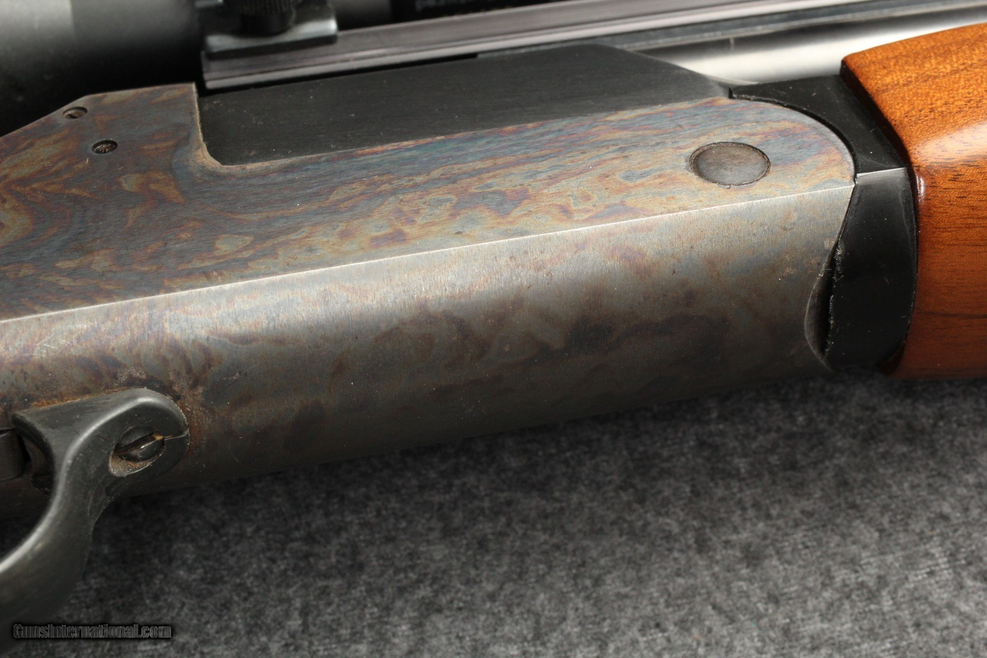 Description: Series B. Serial number C3791XX. 30-30/20ga, 3" chamber. 24" barrel2. Overall in very good condition. Wood shows very light marring in forend, otherwise very little wear. Metal is very good, blue wear on sharp edges. Color case receiver. Bores are excellent. Comes with Simmons 4x scope. Please add $55.00 for shipping and insurance. SOLD Rifle Caliber: .30-30 Winchester Shotgun Gauge: 20 Gauge |