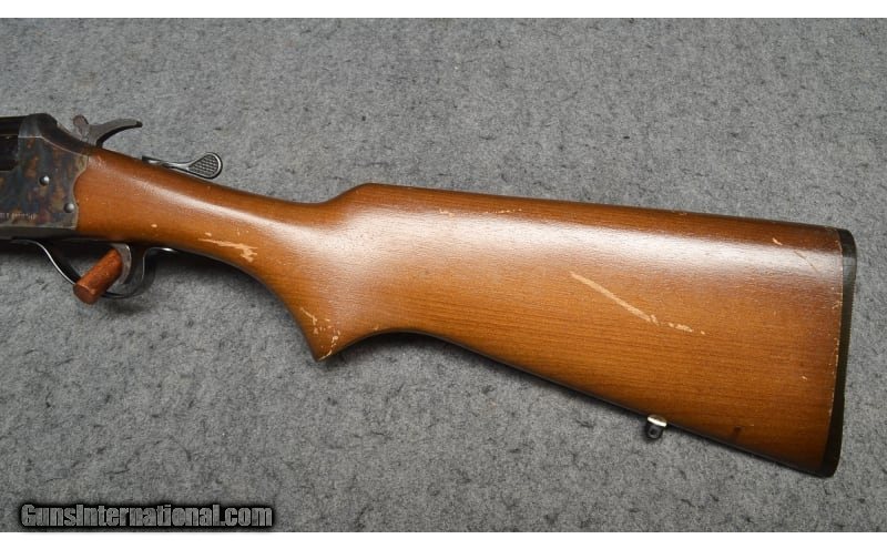 Description: This break-action single fire rifle is a Savage Arms Model 24 - Series N chambered in .22 LR/.410 GA. It has a serrated ramp blade front sight, an adjustable U-notch rear sight, swivel studs top and bottom, and a color case-hardened receiver. The metal shows some scrape marks on front sight mount, but the bluing is in otherwise very good condition. The wood shows numerous nicks and surface scrapes throughout. .22/410 SOLD Chambers: 3" Chamber (.410 GA) Metal Condition: "Some scrape marks on front sight mount, otherwise bluing is in very good condition Wood Condition: Numerous nicks and surface scrapes throughout Bore Condition: Bright and shiny Barrels: 24" barrels Triggers: Single smooth trigger Stock Dimensions: "14¼"" LOP, 40¼"" overall length Fore End: Smooth wood fore arm Butt Pad: Smooth wood butt stock with original plastic butt plate Weight: 7 LB 0 OZ Sights: "Serrated ramp blade front sight, adjustable U-notch rear sight Item Location: Wichita, KS |