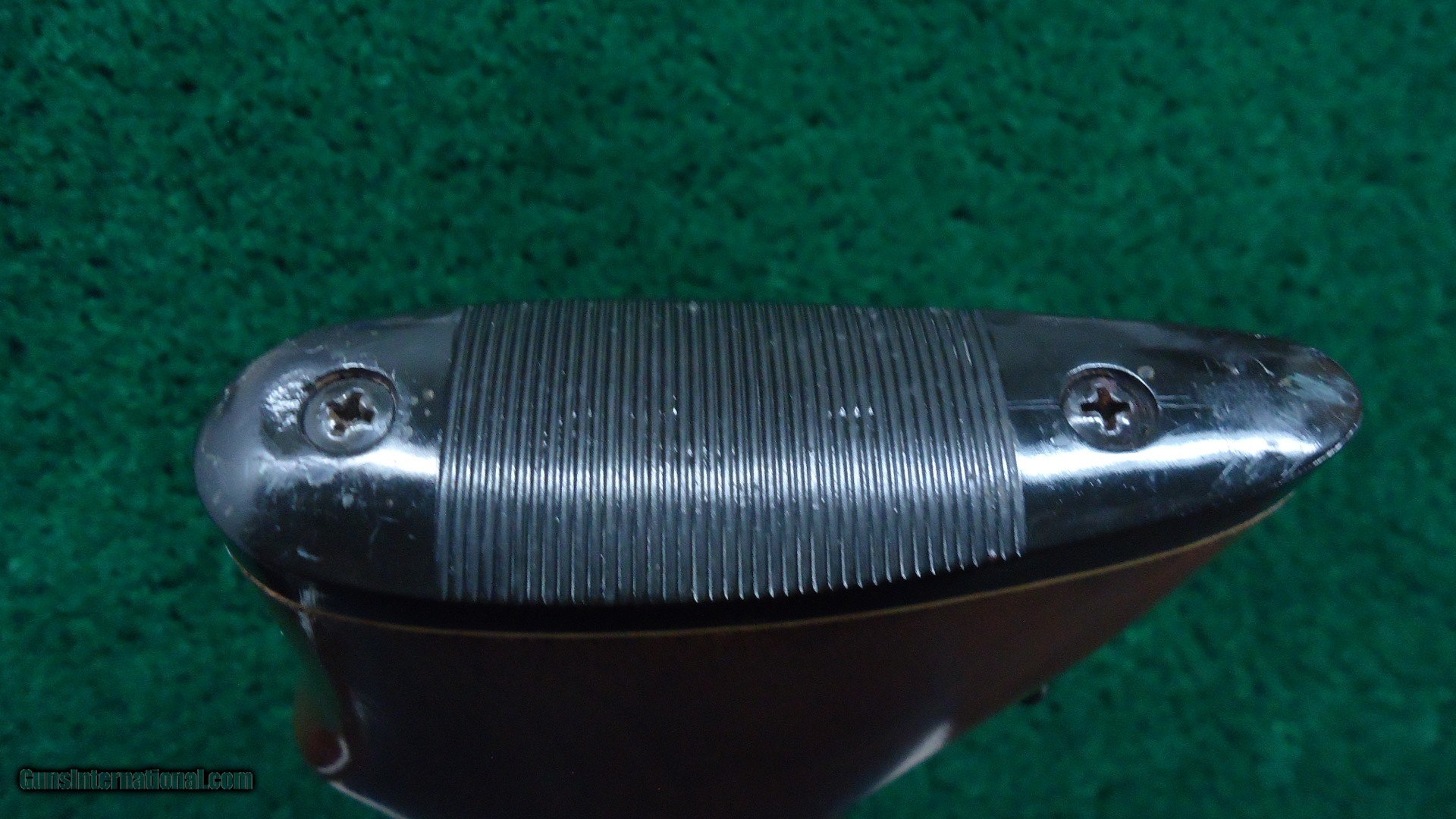 Description: 24 inch barrel with ramp mounted bead front sight and folding leaf rear sight. The 22 LR barrel is grooved for tip off scope mounts. Case colored action has the barrel selector on the hammer. Monte Carlo pistol grip walnut stock has pressed basket weaver checkering. 14 1/4 inch LOP. Very good bright bores. Complete with sling eyes. A nice Savage combination gun that features the under lever opening in front of the trigger guard that was changed in 1980. This one has not been used much. Leroy Merz Antique Firearms specializes in antique and vintage Winchesters and other fine American firearms. Since 1965 Mr. Merz has taken part in the world of firearms and has been a contributor to many well known reference books. We have hundreds of additional guns in every price range at our home online. Search for Merz Antiques in google. SOLD Curio/Relic: Yes Rifle Caliber: .22 Long Rifle Shotgun Gauge: .410 Gauge |