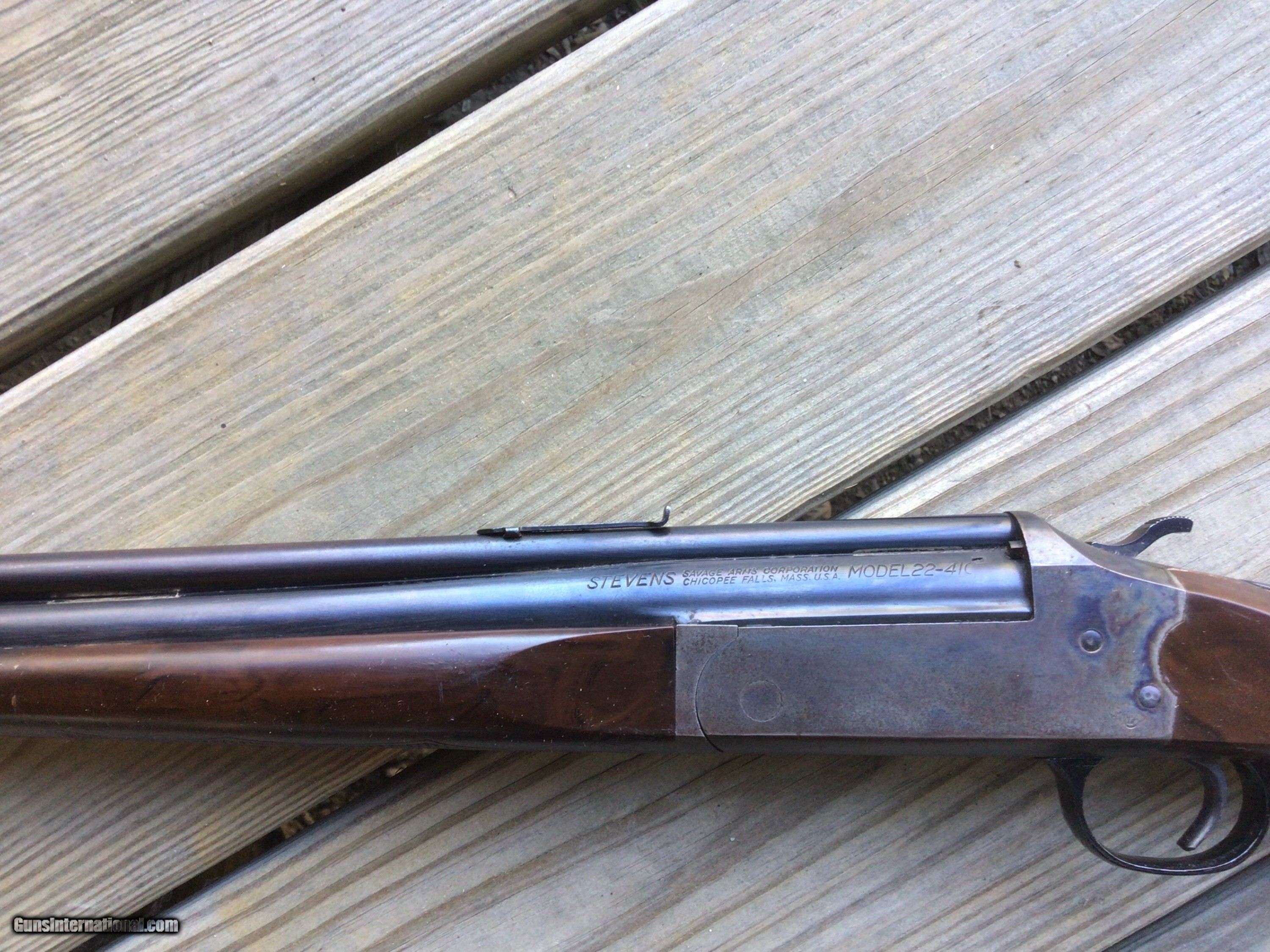 STEVENS 22 LR. OVER 410 GA. OVER & UNDER COMBINATION, POPULAR SIDE BUTTON BARREL SELECTOR, TENITE STOCK & FOREARM, MFG. 1940 to 1949